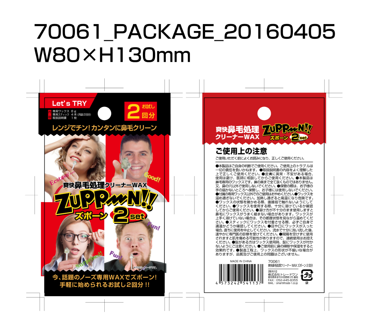 ■爽快 鼻毛処理クリーナーWAX「ZUPP~N」 パッケージ