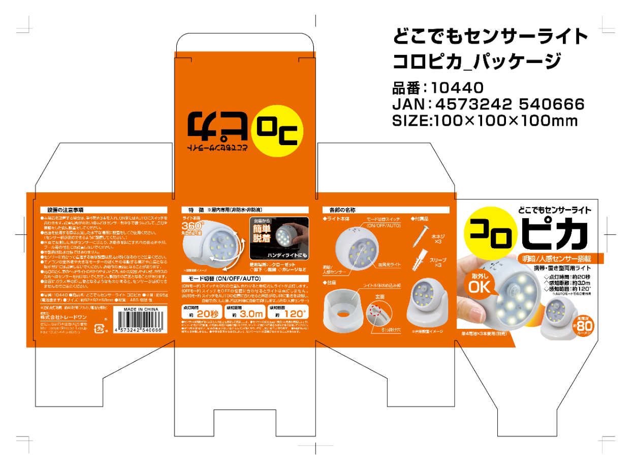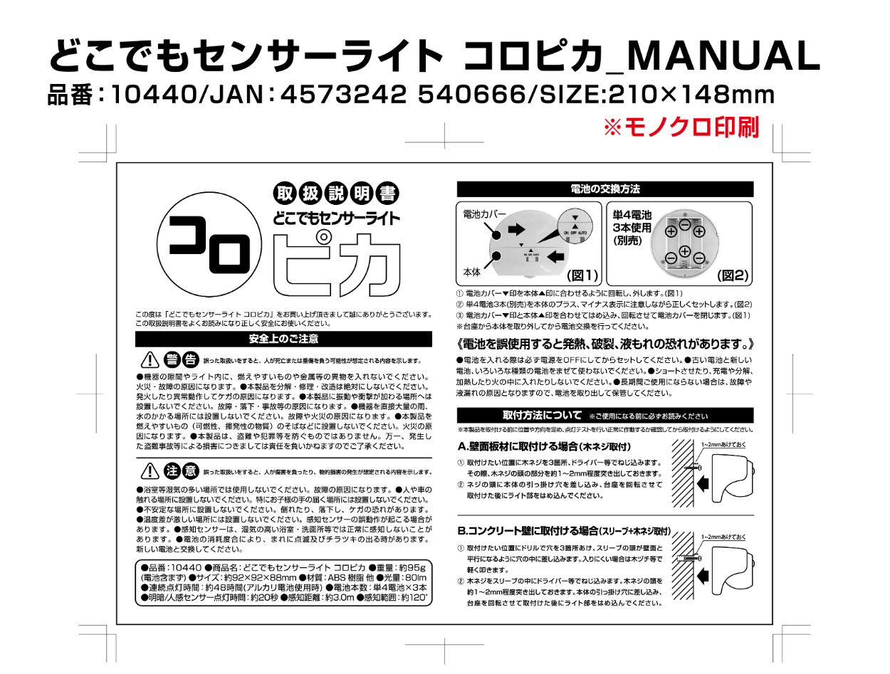 ■センサーライト「コロピカ」パッケージ/取扱説明書