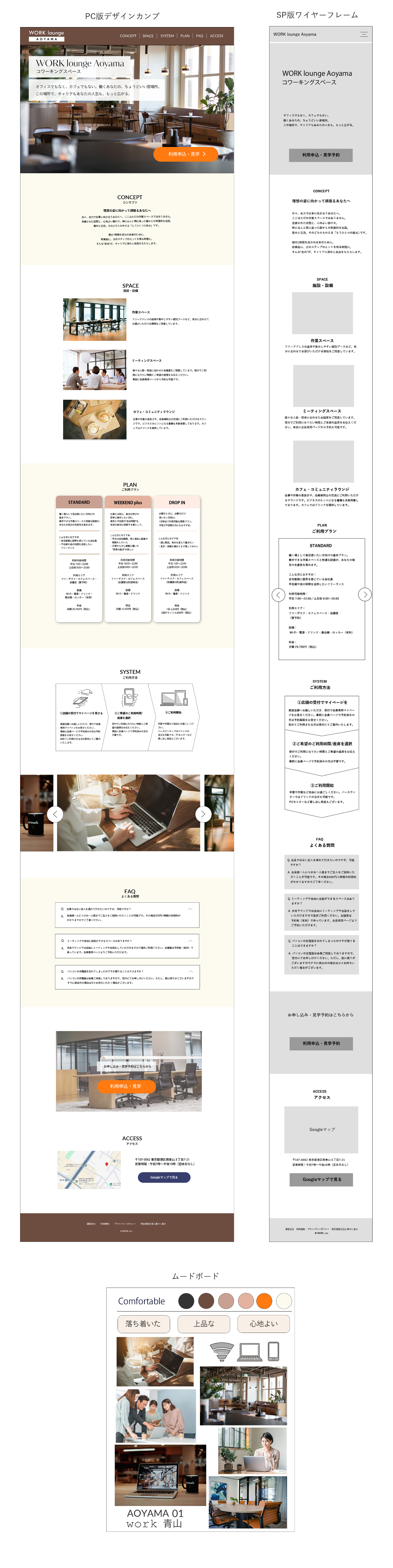 【スクール課題】 LP制作_コワーキングスペース (ワイヤーフレーム・デザインカンプ)
