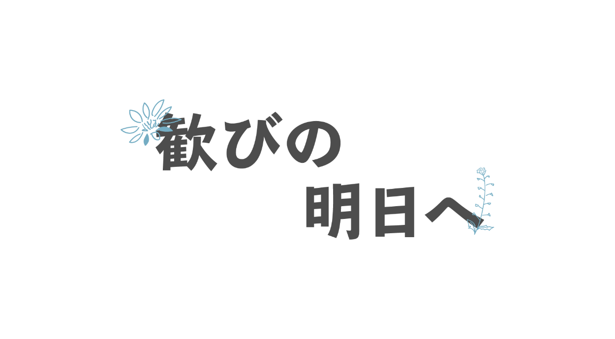 「歓びの明日へ」というタイトルから「明日に向かって咲いていく花」を連想し、タイトルに花を咲かせるようデザインしました。