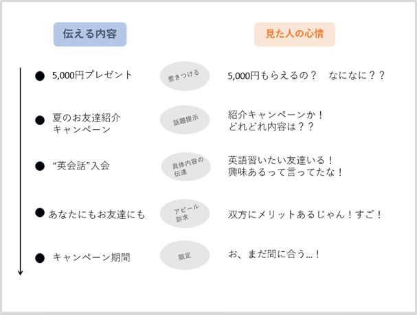 ・英会話教室を表すように外国人女性のイラスト素材を使用し、英会話訴求効果を狙った。