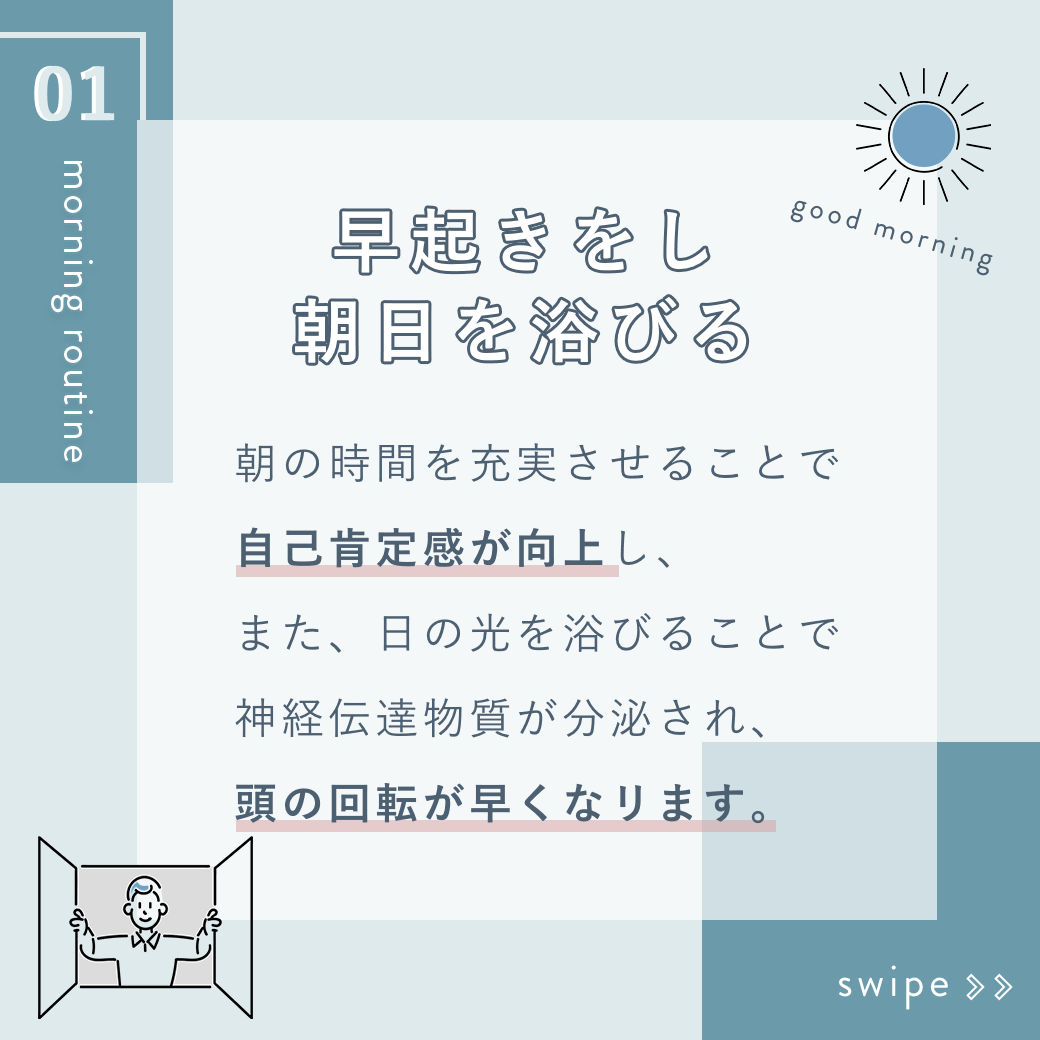 - モーニングルーティンということで、色味を爽やかな朝の感じをイメージしました。