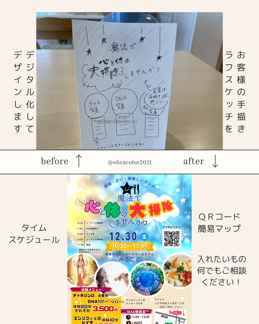 主にイベントやセミナーの告知ツールとしてフライヤーを制作しています。 美しさ、インパクトを重視し、必要としている方へしっかりと届くエネルギーが乗ることも意識しています。