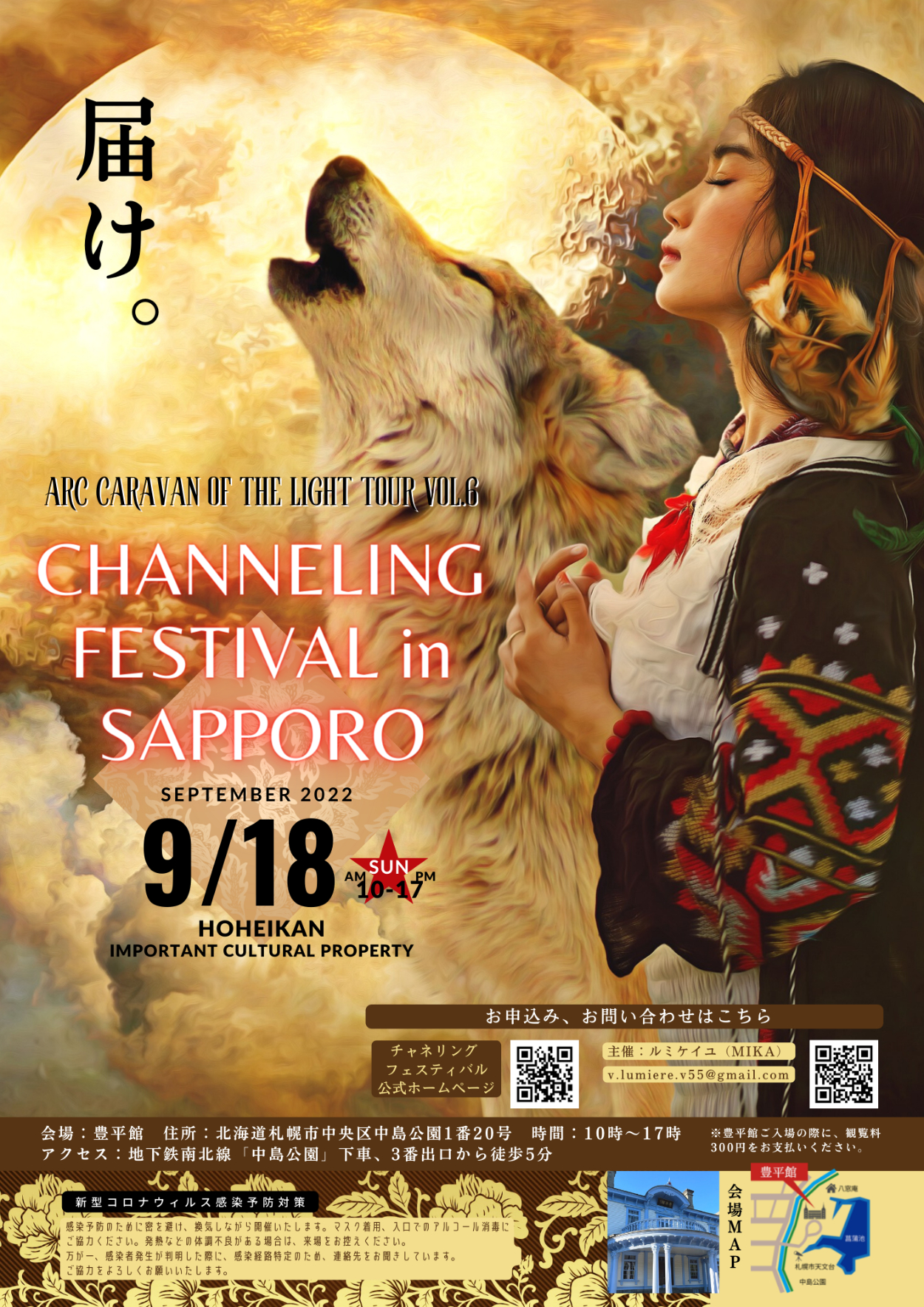 ・北海道の原初の魂の部分、それが持つエネルギーを表現したくてたどり着いたデザインです。狼の遠吠えと祈るような姿が「届け。」というフレーズに合致しました。