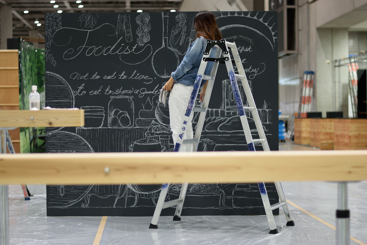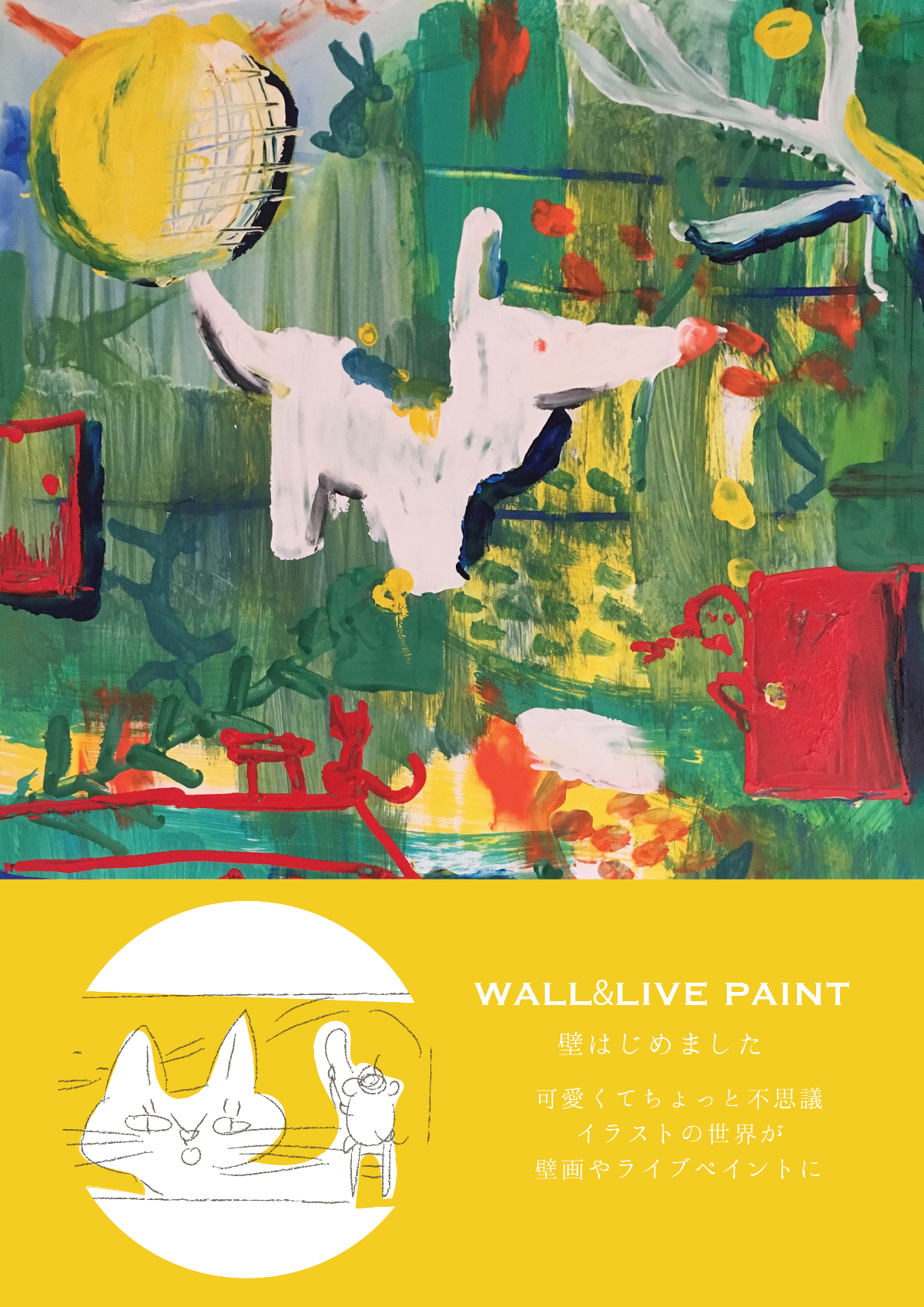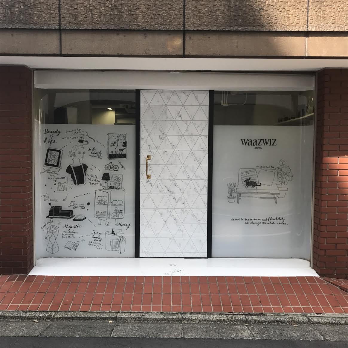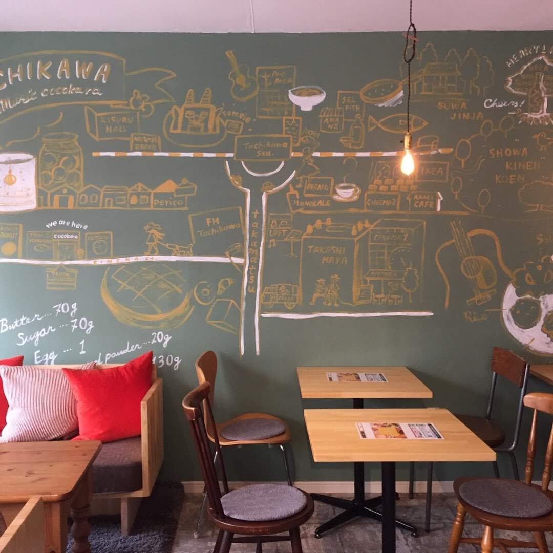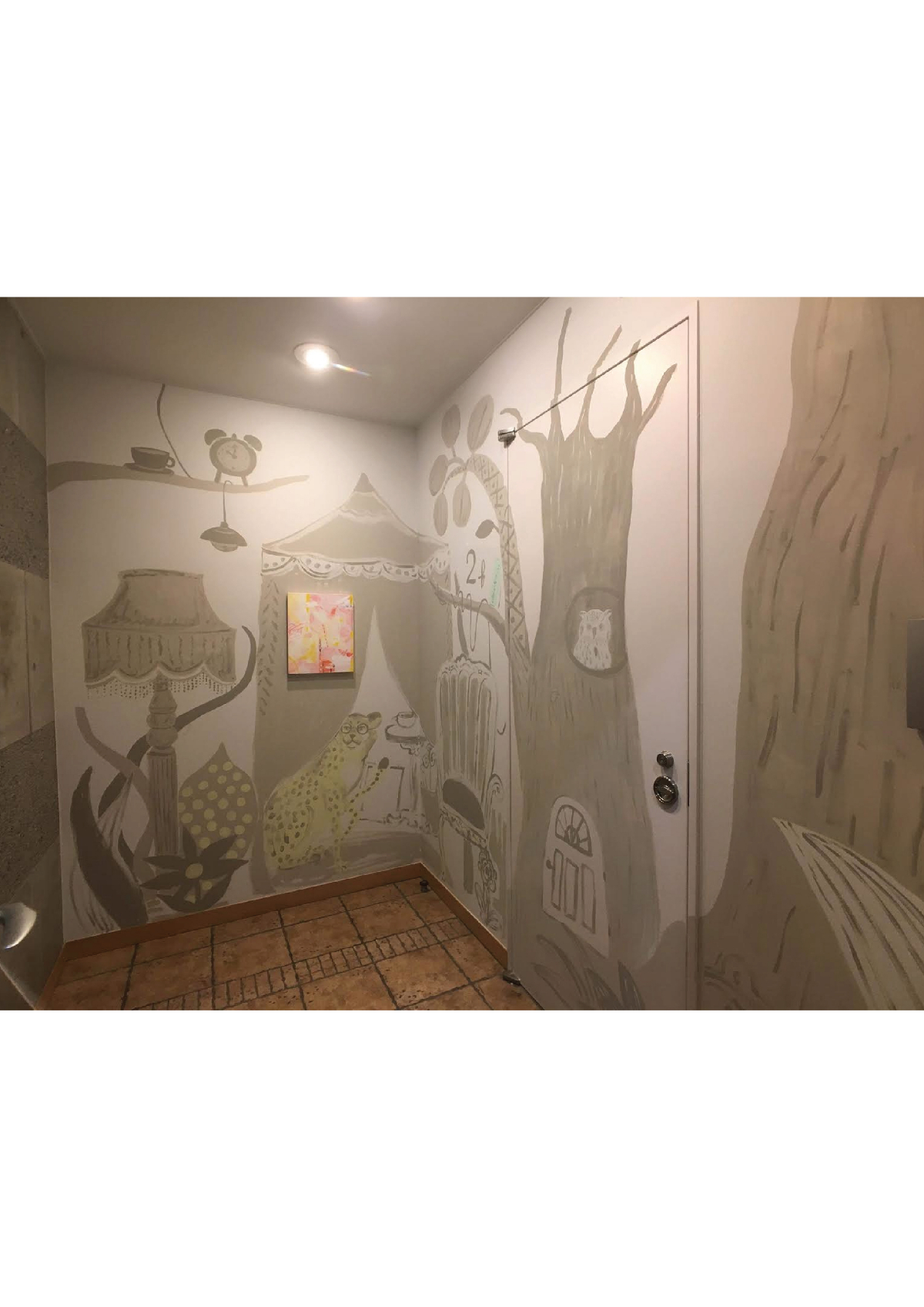 壁画資料 Aimi Chiyoya イラストレーター 立川LOFT さまにて窓ガラスにライブペイント5周年アニバーサリーの期間中展示cafe cocokara壁画映像制作会社さまエレベーターホール壁画アクリルメーカーさまオフィスウィンドウイラスト