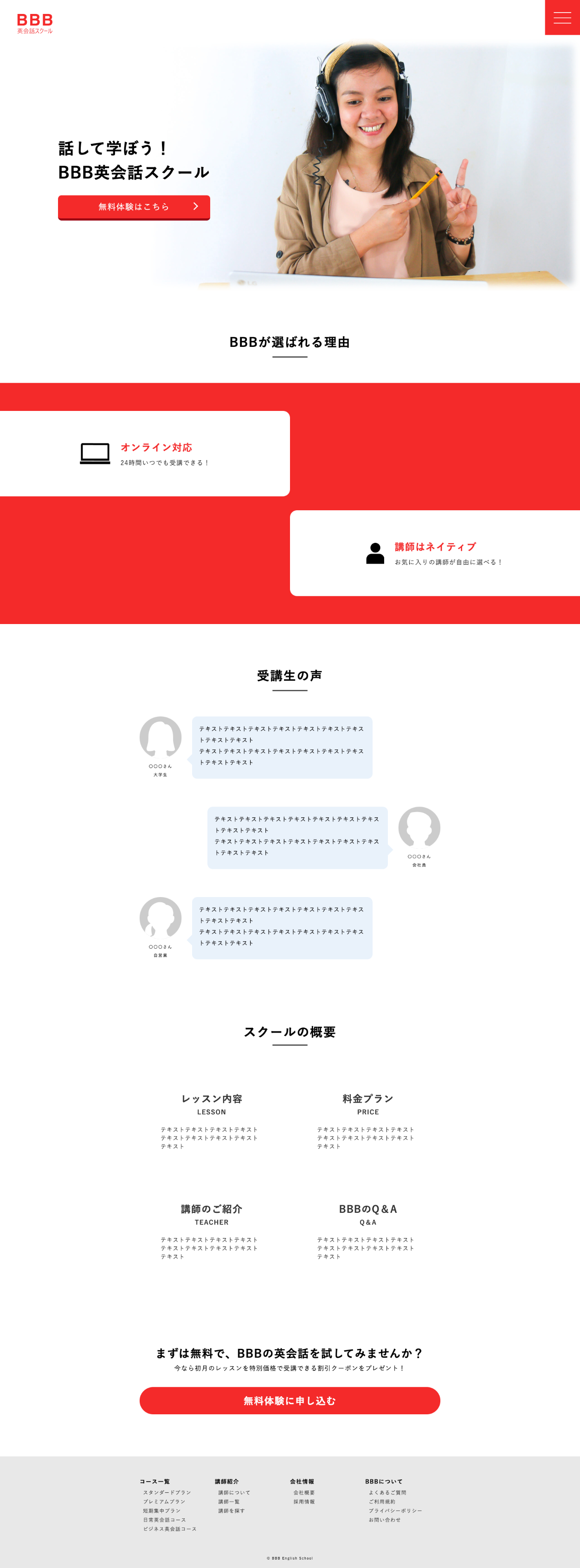 ランディングページ BBB英会話スクール 伊藤 弘 OVERVIEW BASIC認証 ユーザーネーム: maxhiroshi パスワード: maxhiroshi YEAR 2022 URL:http://max0721.html.xdomain.jp/LpSite↓ソースコード一式ですPCSP WEBSITE