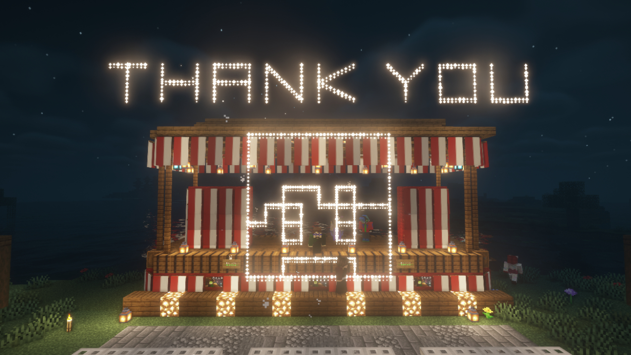たくさん募った想いをMinecraftという形で少しでも楽しみに変えてもらえるよう、今回の花火大会を企画しました。来年はきっと現実でも割れんばかりの拍手で迎えられるその花を見ることができるでしょう。