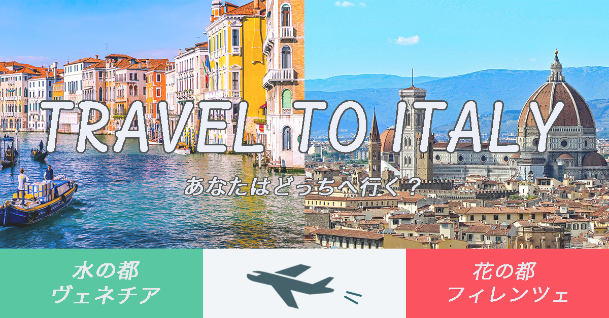 - ヴェネチアとフィレンツェの二都市の雰囲気が伝わるような写真を選び、イタリア旅行への気分が前向きになるデザインにしました。
