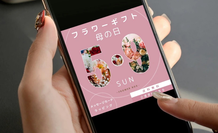 母の日・お花に合ったピンクと白を基調としたデザイン。
