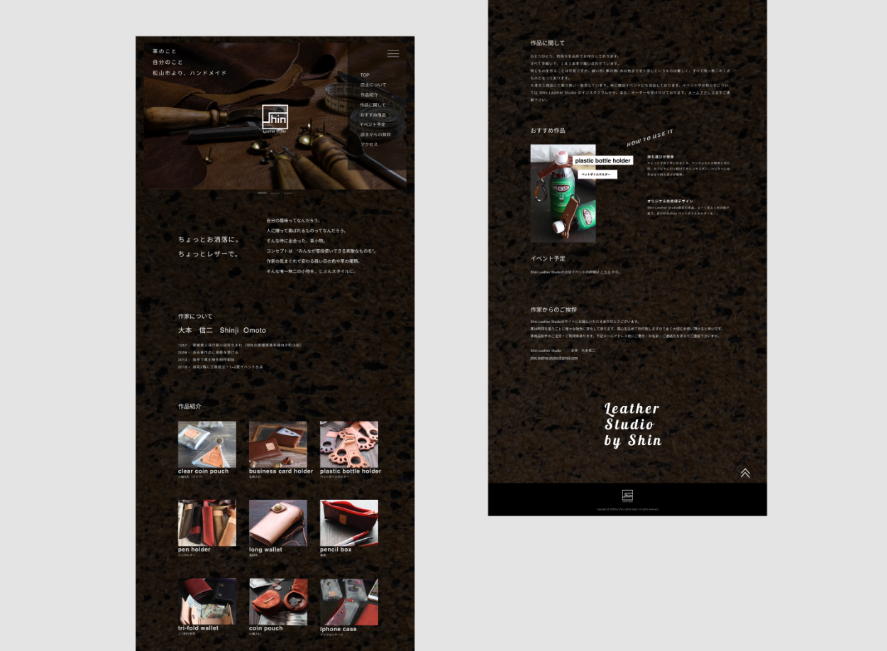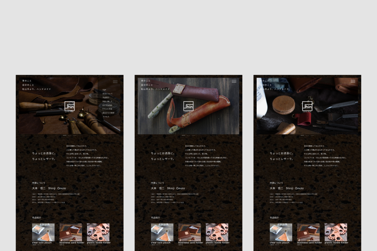 店主の趣味きっかけに人々が繋がれるようなコーポレートサイトにしたいと心がけました。人柄がとても良く、どういった商品が人に喜ばれるのだろうかと常に思考している人で革が大好きなのが打ち合わせの際に伝わったので、店主の人柄の良さ、革商品の製品の便利さが伝わるようにと案を練りました。