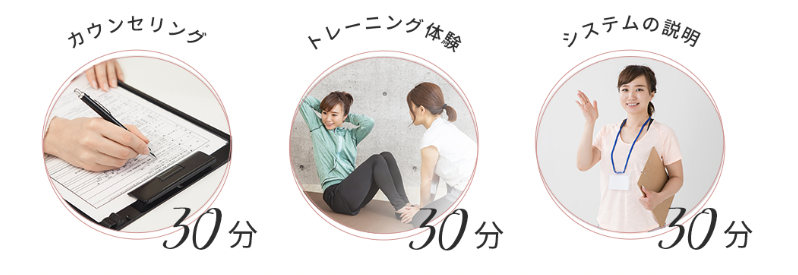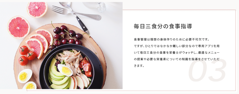 2.30代の女性をメインターゲットとしている女性専用のパーソナルジム。ただ痩せるのではなく、自分らしい美しさを目指すことを大切にしており、どのような姿を目指していくかの目標設定から寄り添い、トレーニングはもちろん日々の食事管理までを徹底してサポートしてくれるのが特徴。