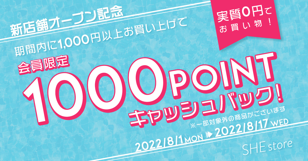 ・期間内に1000円以上お買い上げで会員限定1000ptキャッシュバック!