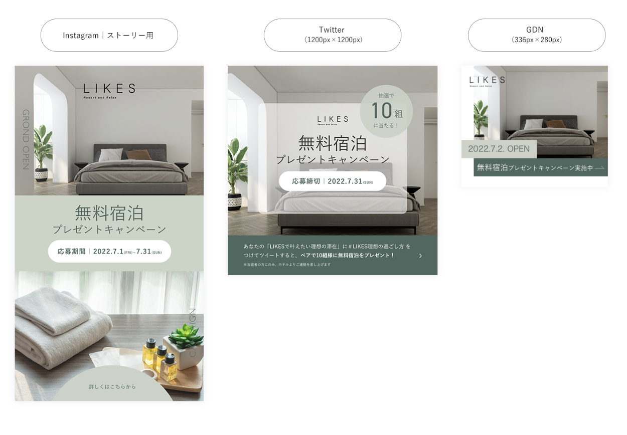 - Instagramストーリー用のバナーは、世界観に没頭、ホテル雰囲気が伝わるように