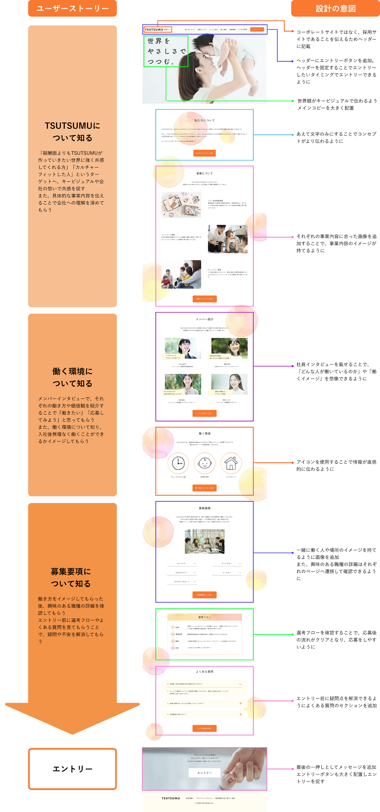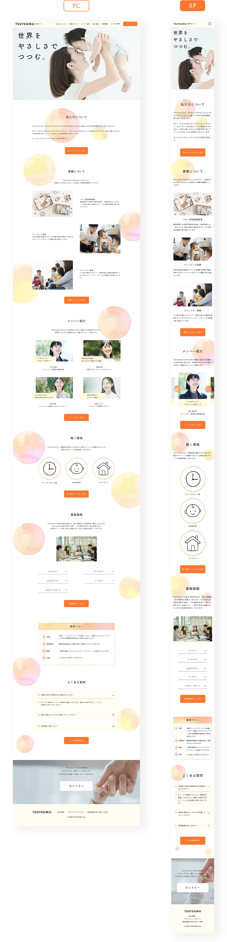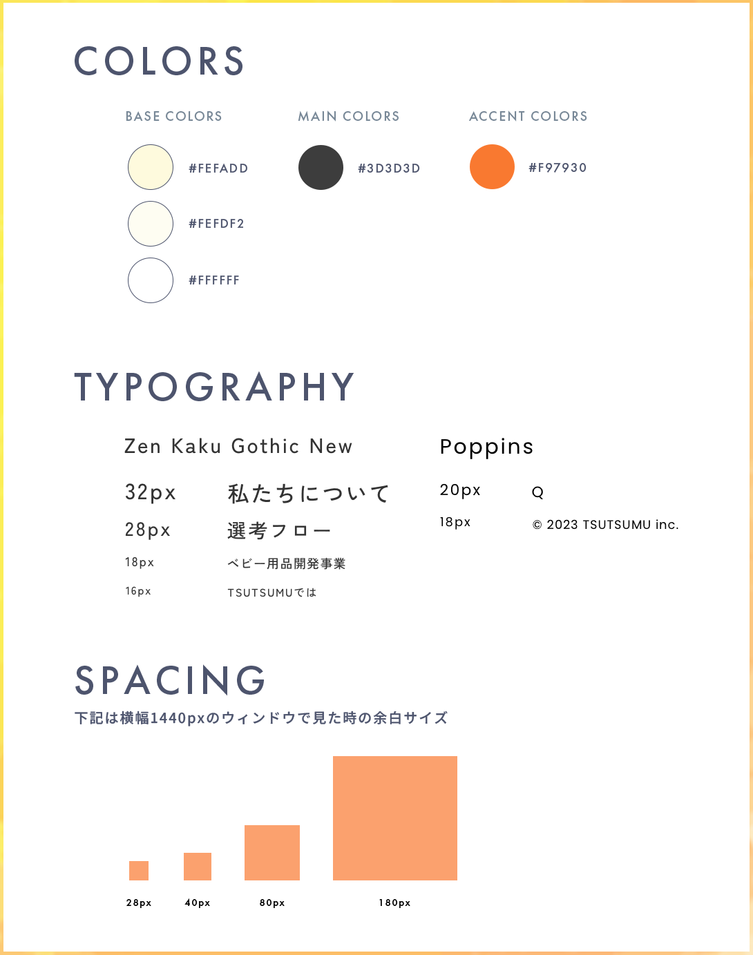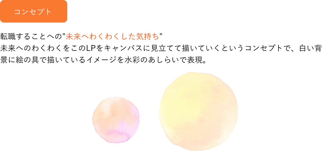 配色については、明るい未来をイメージしたオレンジと、やさしさをイメージできるベージュにまとめています。また、全体的に余白を広く持たせることでやさしさを表現しています。
