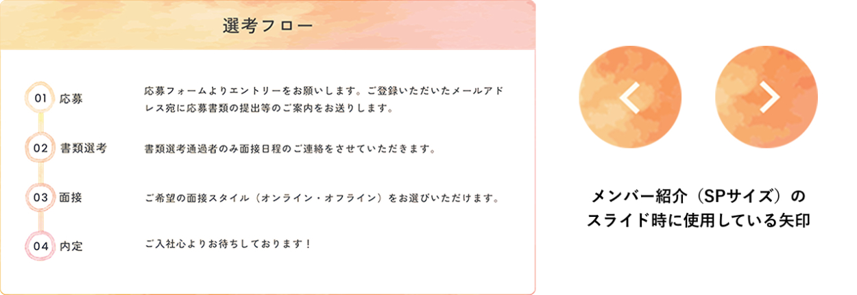 背景に使用している水彩のあしらいを画像の一部に使用することで、細かい箇所でも統一感が出るよう工夫しました。