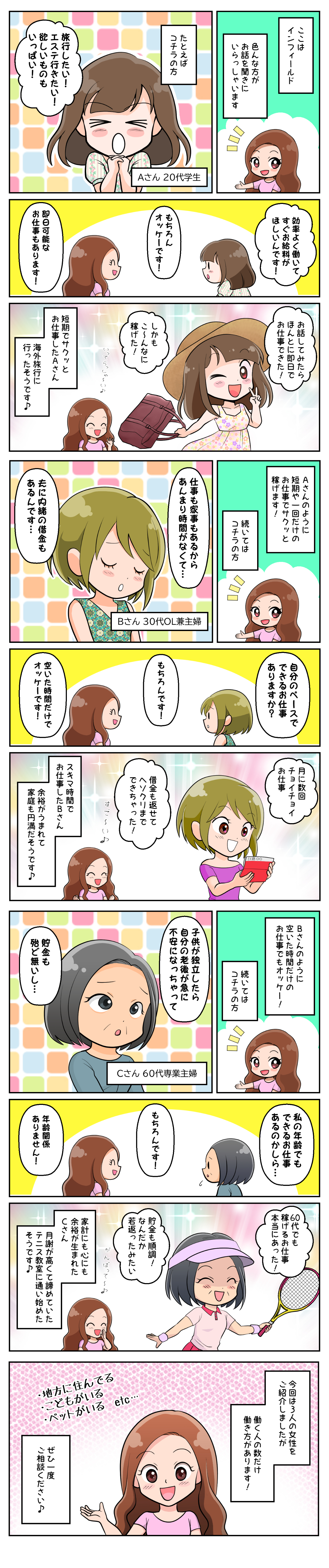 広告漫画 CK イラストレーター・ヘアメイク OVERVIEW 広告の漫画です。 求人広告用の漫画です。YOUTUBE動画にもなっています。求人広告用の漫画の最新版(2025年2月現在)です。YOUTUBE動画の方の編集・サムネイルの作成もいたしました。海外向けの広告です。企業向けの広告です。