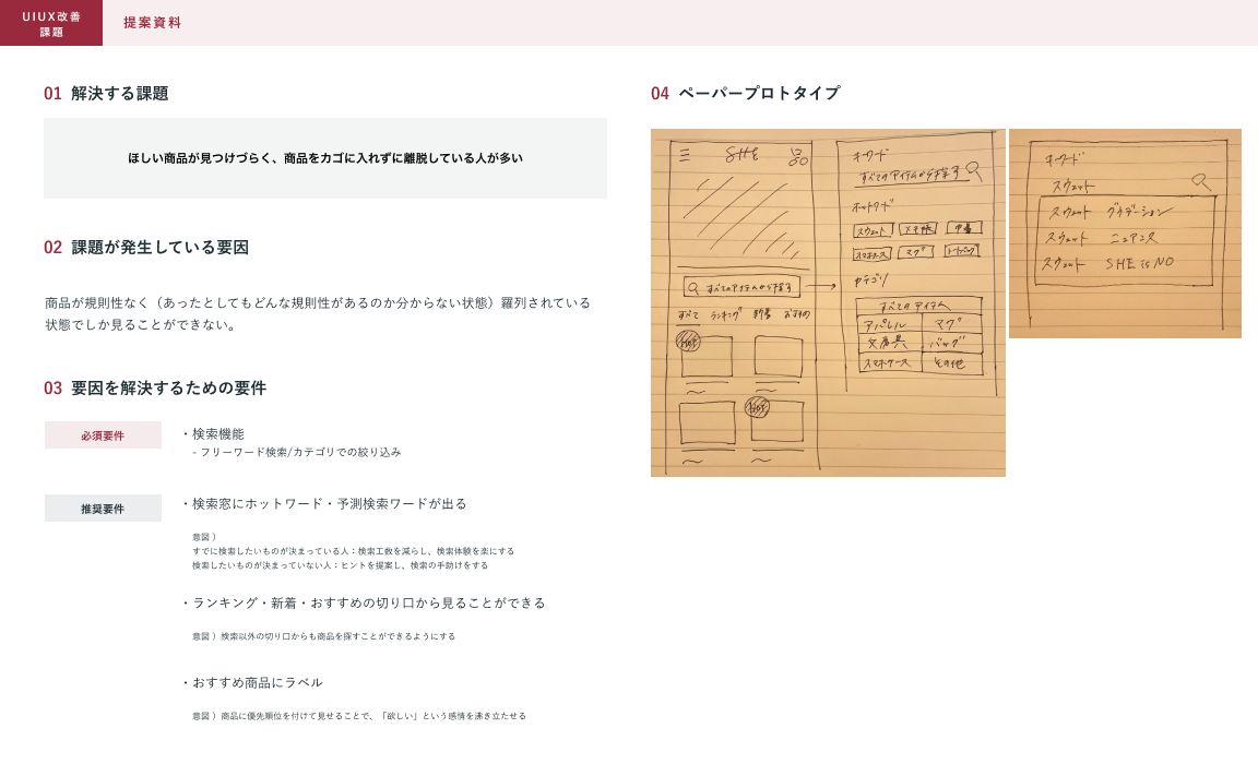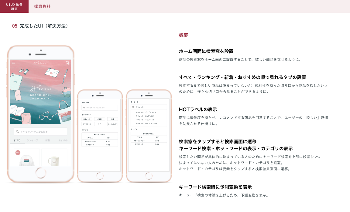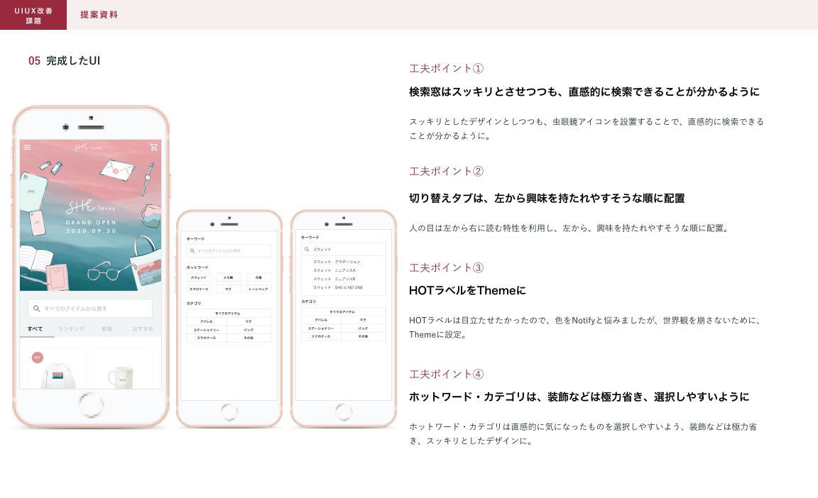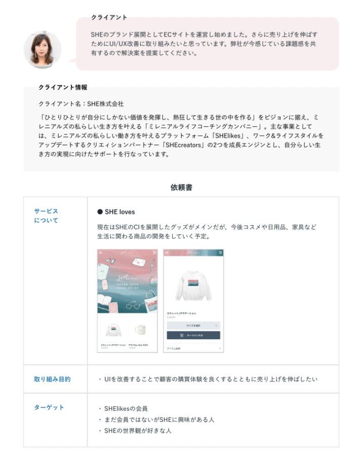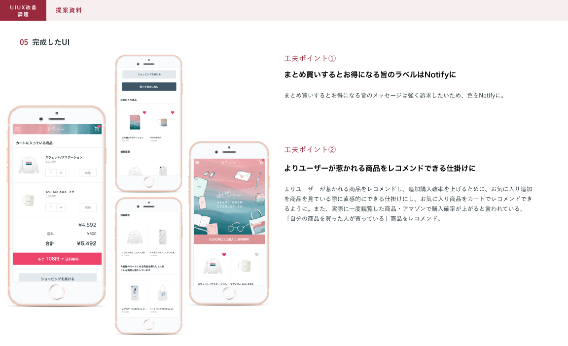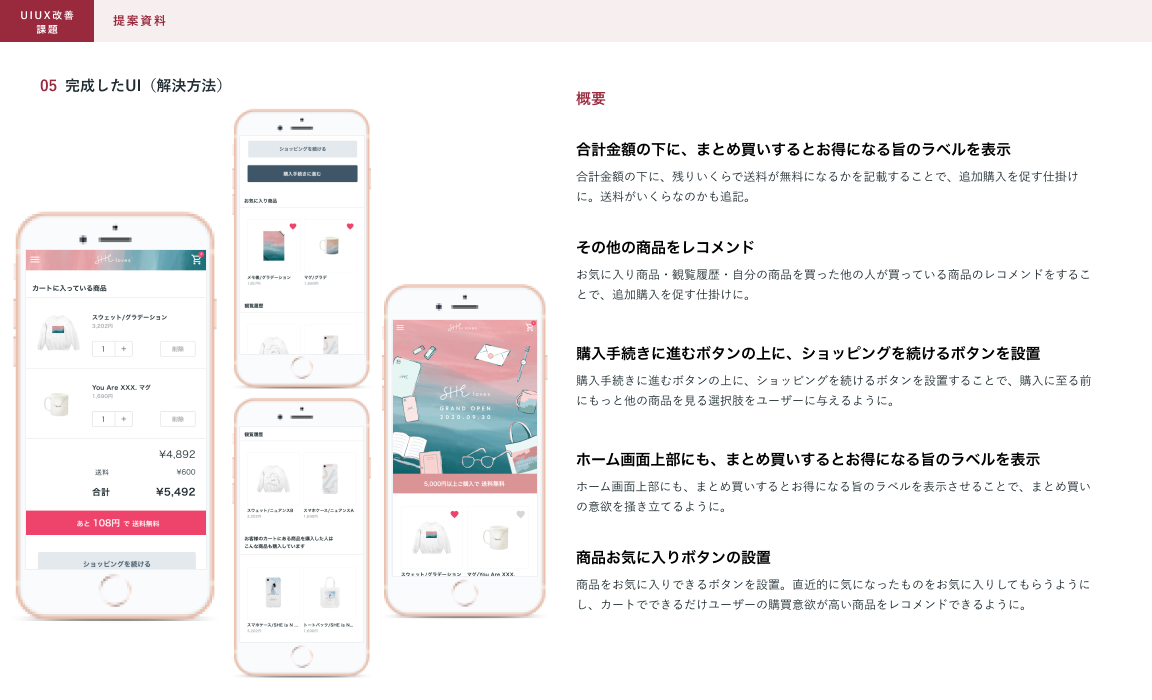 既存のECサイトにおいて架空クライアントの課題が発生している要因を考え、UI/UX改善に取組みました。【SHElikes MULTI CREATOR PROJECT 課題】