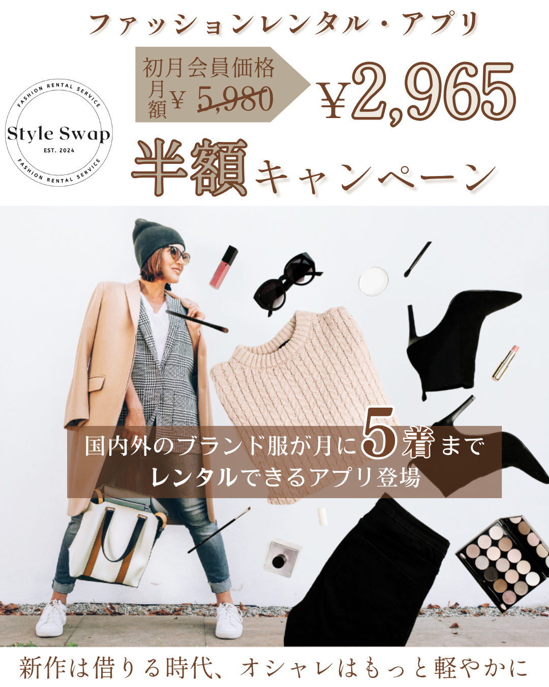 新たなブランド服をレンタルできるということを「新作は借りる時代、オシャレはもっと軽やかに」というコピーで表現しました。