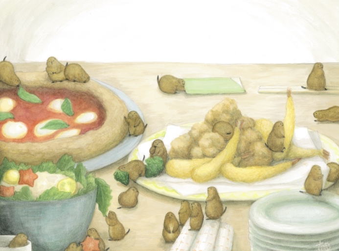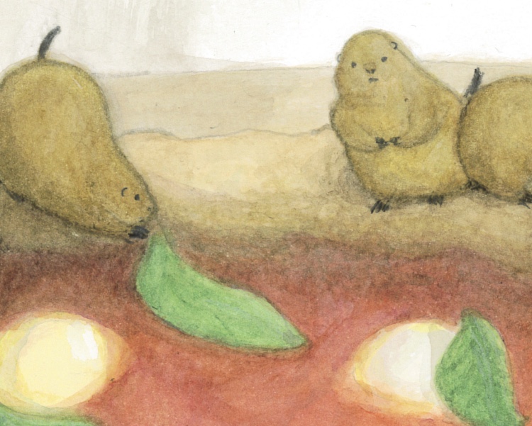 デジタル着色では納得出来なかったところ(質感や混色やのっぺり感や…)が透明水彩ならしっくり来た!という経験は、私の制作においてとても大きいです。