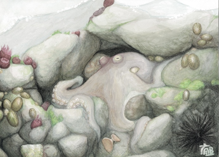 隙間でしあわせそうなタコ