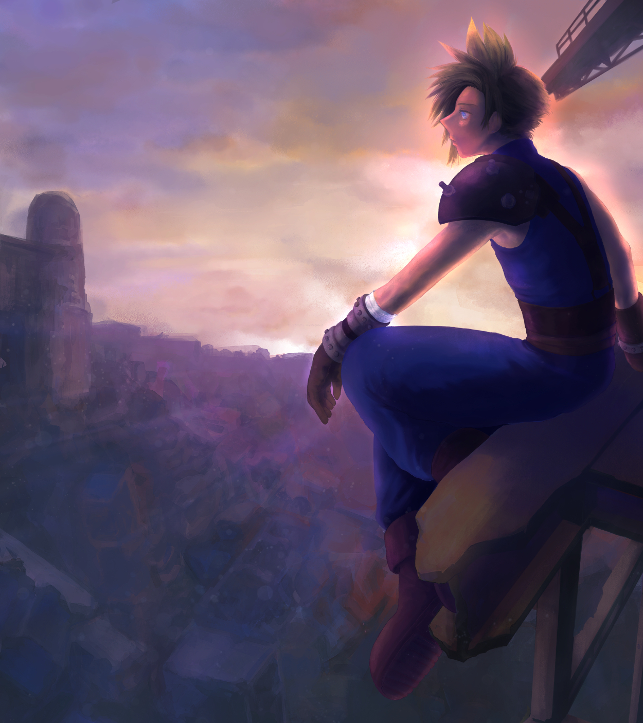 夕日が沈み切る直前、陽に当てられる瓦礫の街