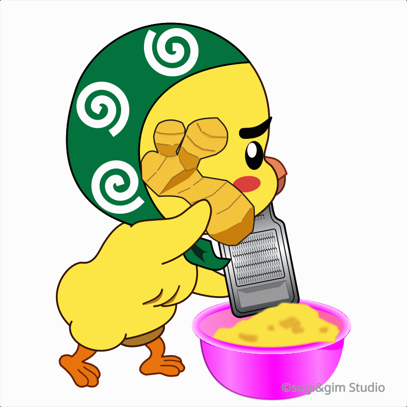 オリジナルキャラクター「風呂敷頭巾ぴよ」によるGIF動画シリーズです。 他、大根すりすり編もございます。