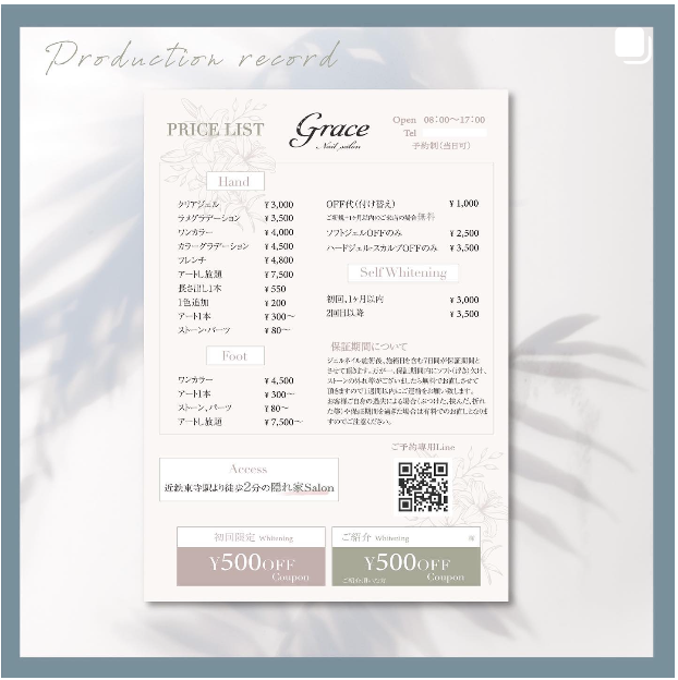印刷物デザイン制作実績 mikii.sappuyerdesign フリーランスWebデザイナー インテリアデザイナー様名刺エステサロン個人様名刺ネイルサロン個人様名刺ファッションスタイリスト個人様名刺ネイルサロンメニュー表窪田薬局販促ポスター