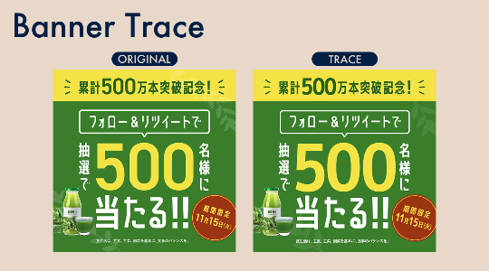 「5,000円プレゼント」でInstagramとXユーザーの注目を引き、左上から右下にかけて動いていく人間の目線の動きを意識した情報設計を行った。