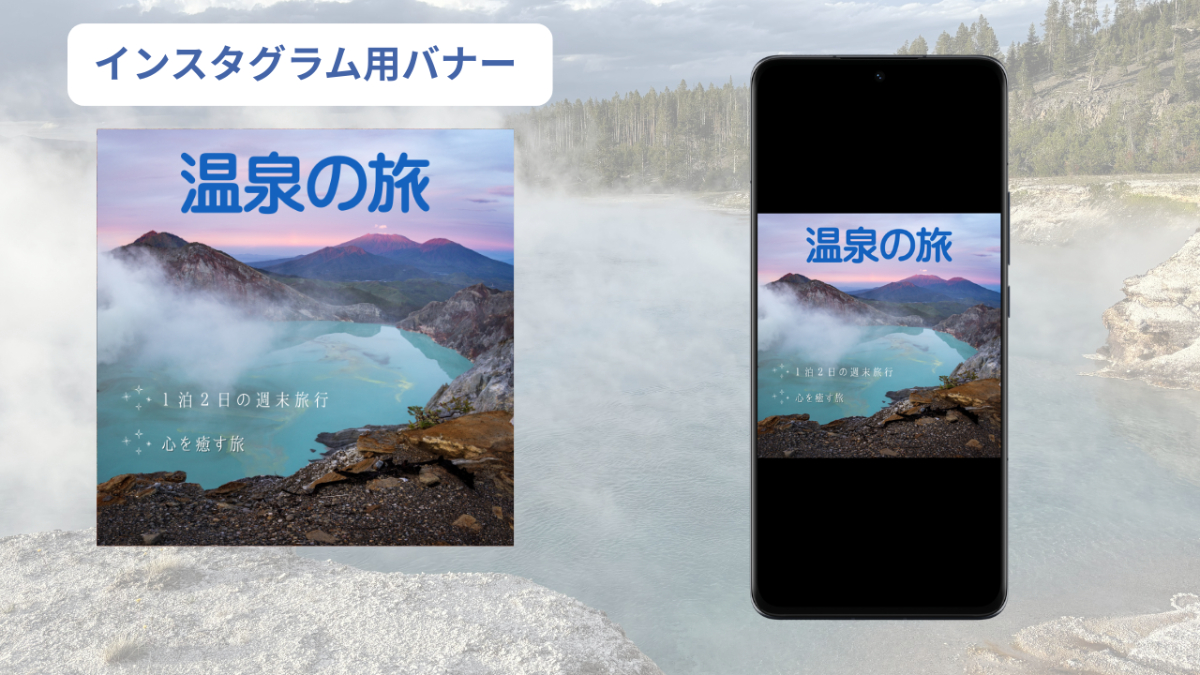 温泉の旅のインスタグラム用のバナー