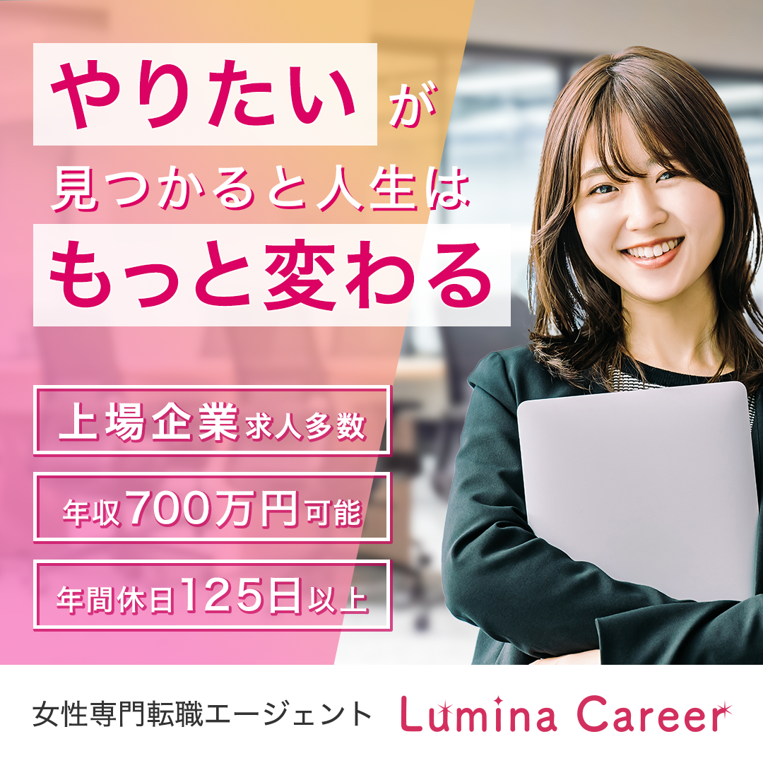 ・上場企業、年収700万円というコピーから、しっかり働くキャリアウーマンをイメージさせるモデル画像を使用。(オフィスの背景に、PCを持ち、ジャケット着用)