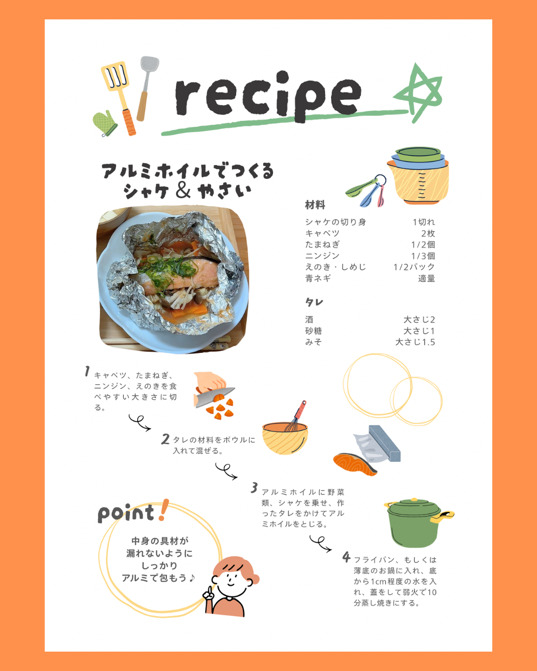 ・アルミホイル蒸し(シャケ、野菜)レシピ