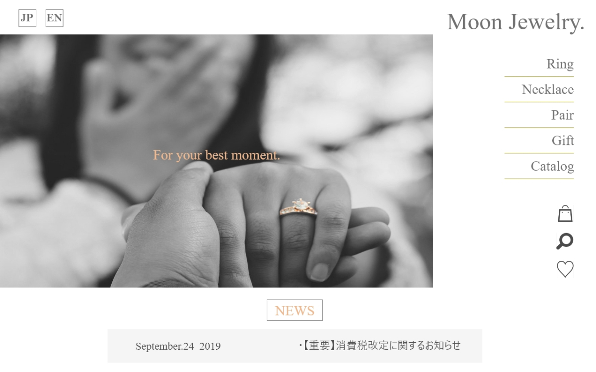 ジュエリーサイト。20代後半~40代向け。高級感が出るよう、なるべくシンプルに、