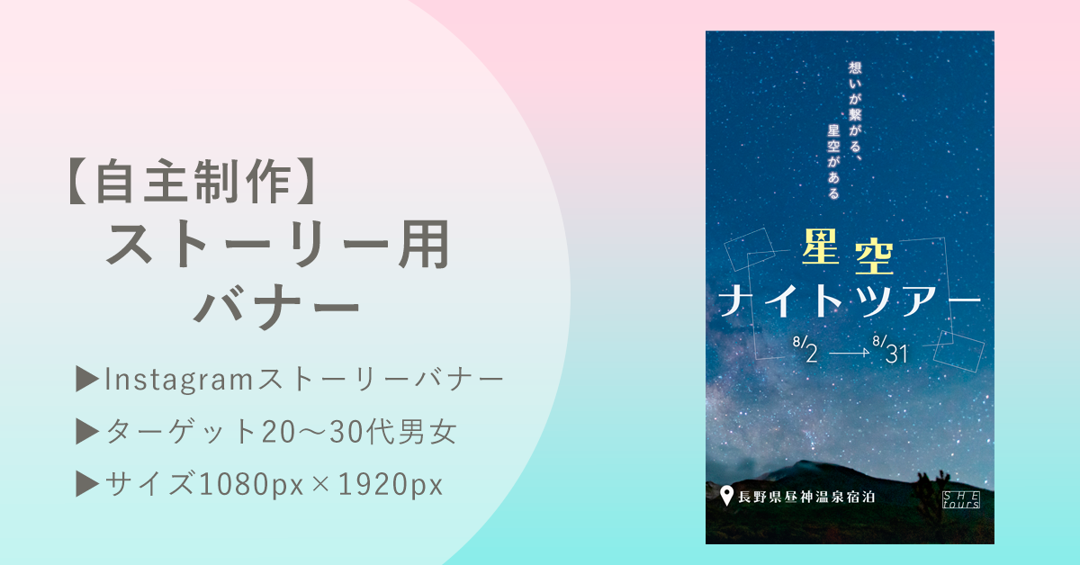 SHElikesコミュニティ内企画/Instagramストーリー用バナー/与件:ツアー客を増やしたい/夏の特別感・ワクワク感を大事にしたい