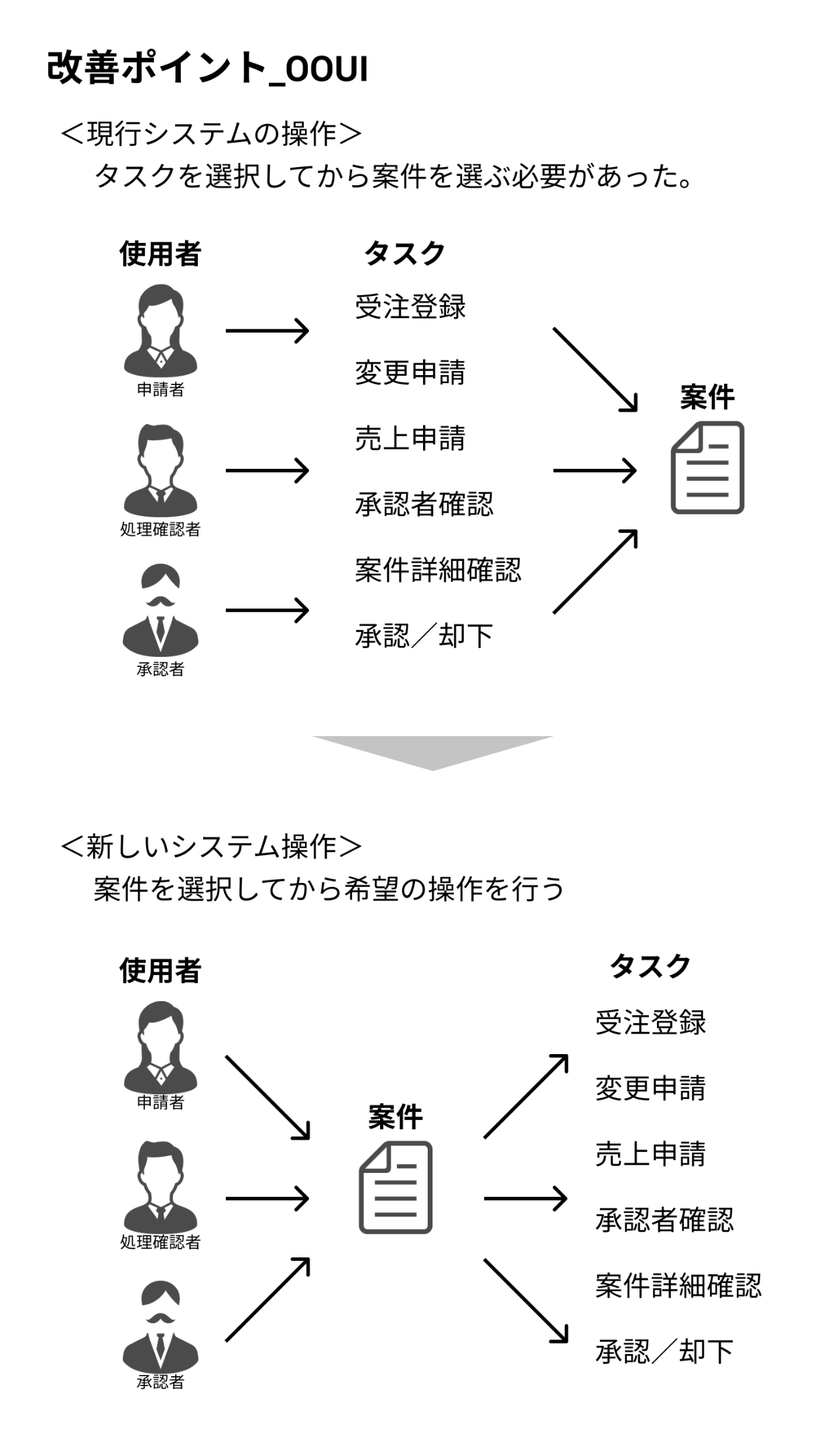 受注案件を管理する社内システム「案件管理システム」を題材に、タスク指向UIから