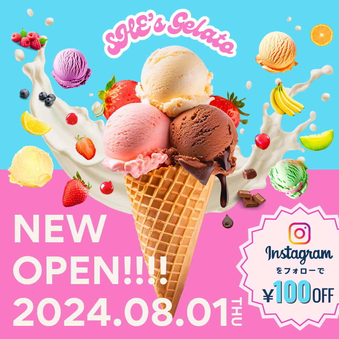 アイスクリーム屋「SHE's Gelato」NEW OPENの広告バナーを自主制作しました。