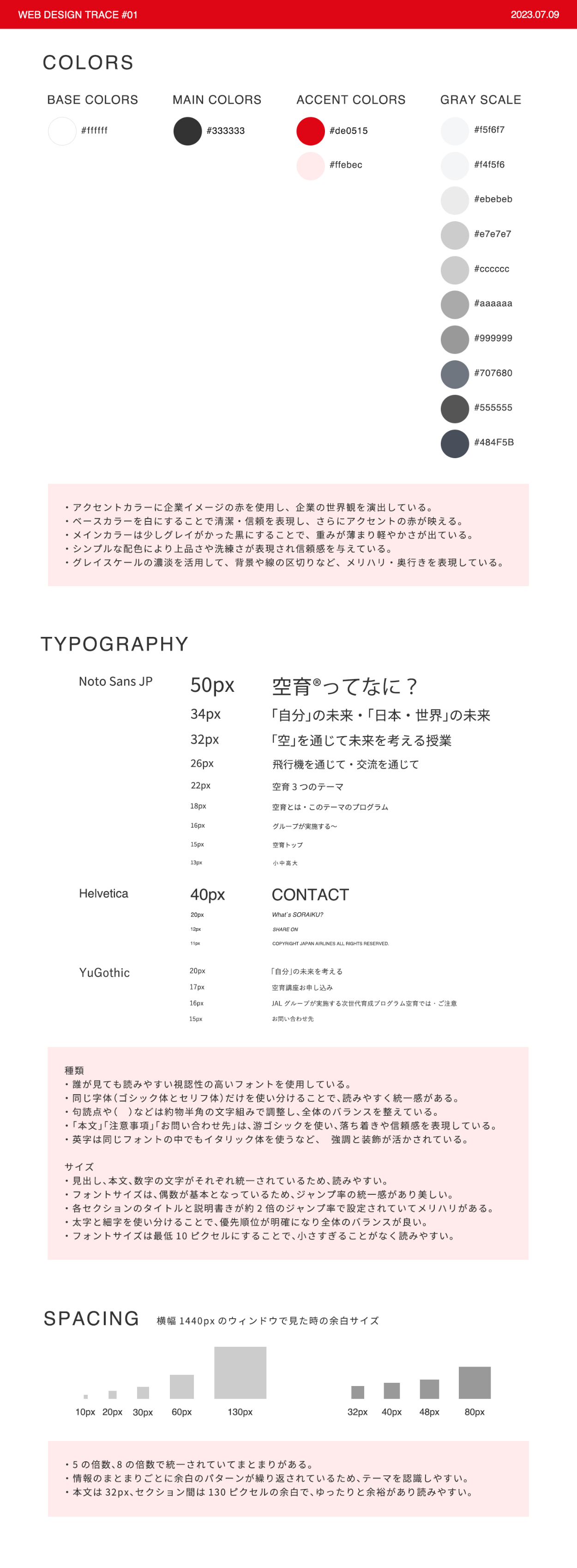 MULTI CREATOR COURSEの3つ目の課題です。この課題ではWebページのトレースと分析に取り組みました。スタイルガイドの作成にも挑戦し、一定のルールに則ってデザインことを学びました。