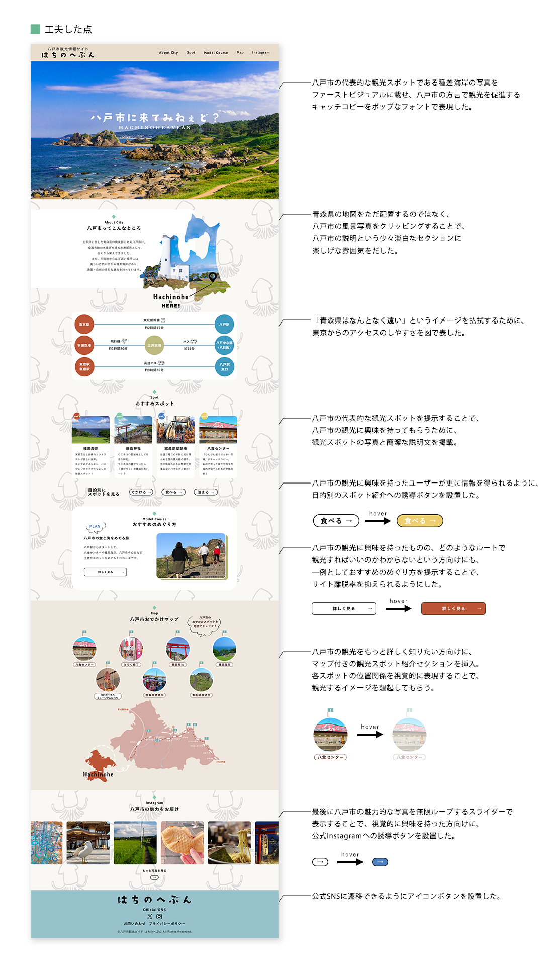 青森県八戸市の観光促進のために、観光スポットや情報が載ったサイトを作ってほしい。
