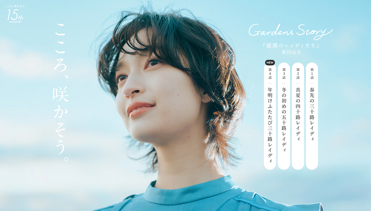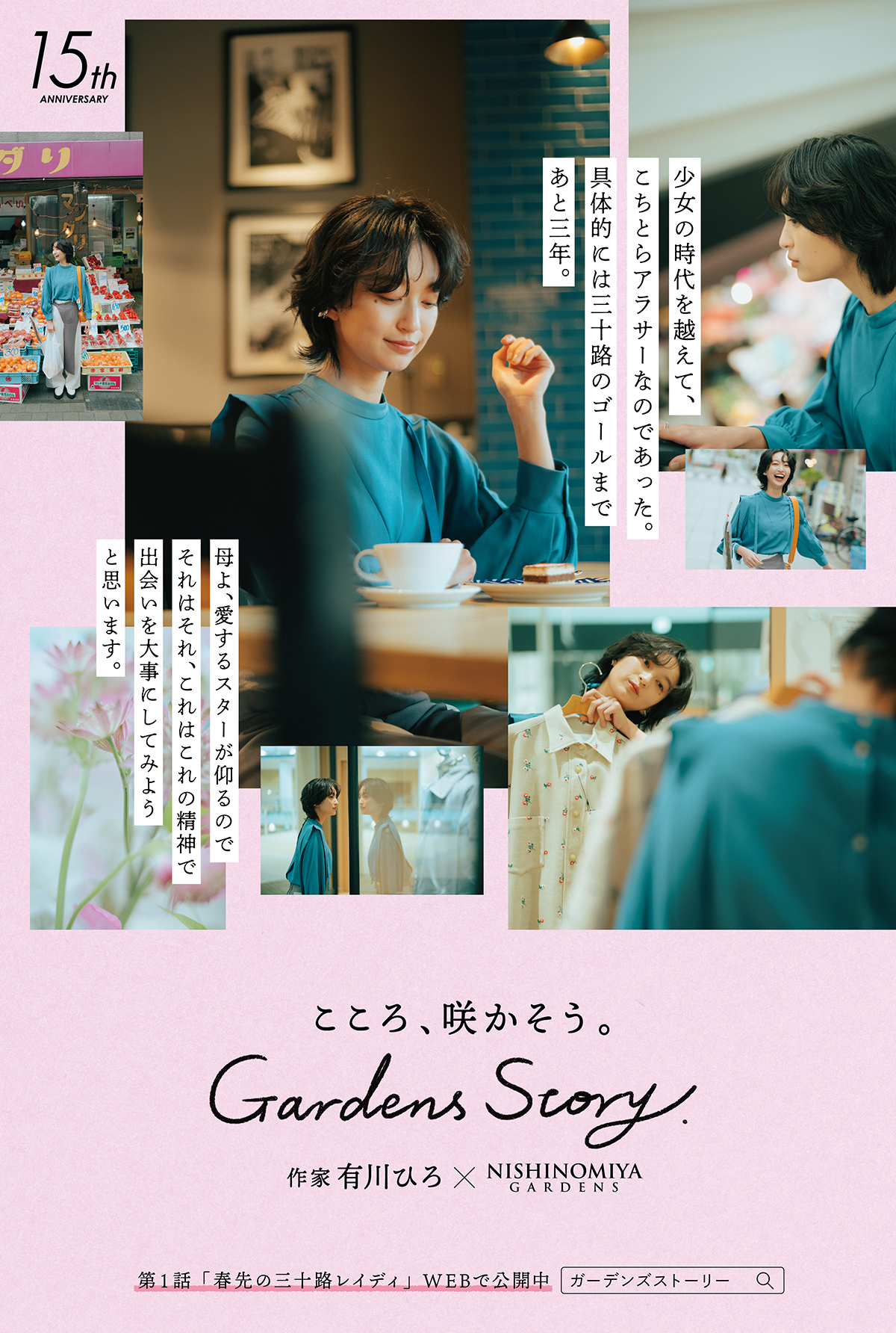 モノやコトを提供する「館」ではなく、お客様・従業員・テナント・地元の方とつながり、想いを共有できる場所、暮らしの一部で共に育む場所として、阪急西宮ガーデンズの存在を改めて定義し、「こころ、咲かそう。」というスローガンを掲げました。表現は「こころ、咲かそう。」をより魅力的に伝えるために阪急西宮ガーデンズにまつわるGARDENS LOVERの主人公の物語で春夏秋冬の4部構成にしました。