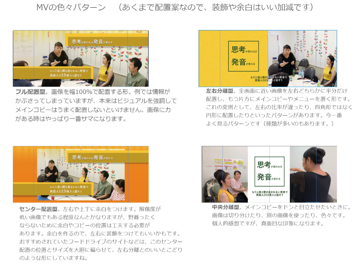 自分が講師プロフィールから下半分。もうひとりが上半分を担当し、最終的に自分がカンプをまとめて調整する方針となった。またメインビジュアルに関しては、担当デザイナーが悩んでいる様子だったので、下のような画像を送ってアイディア出しをした。
