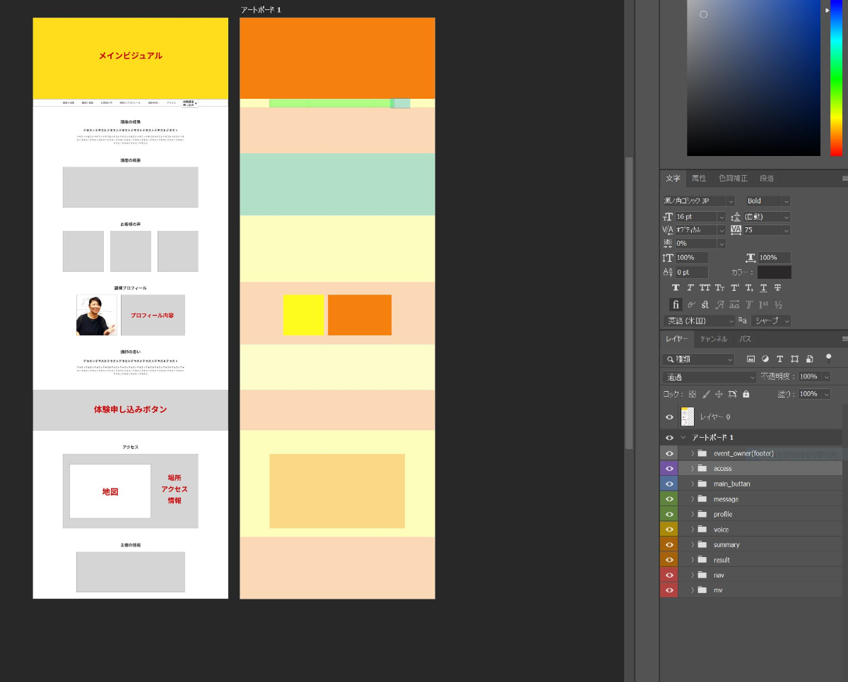 ディレクターがXDで作った簡易ワイヤーフレームを元に、すぐにアートボードに起こしてフォルダ分けを行い、デザイナーで共有した。