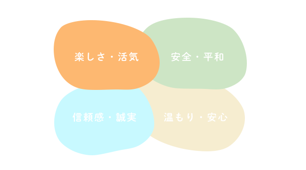 ベースカラーは温かみのあるベージュを設定し暖かい日の光から感じる温度感を表現しました。その中で下記の4色をメインカラーとし、それぞれ赤ちゃんが幸せに暮らせるように周りを包み込む各要素を表現しました。