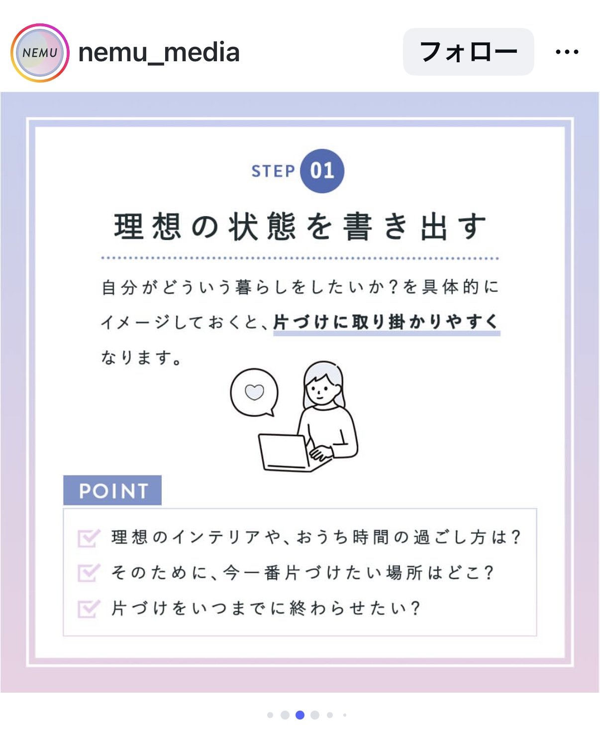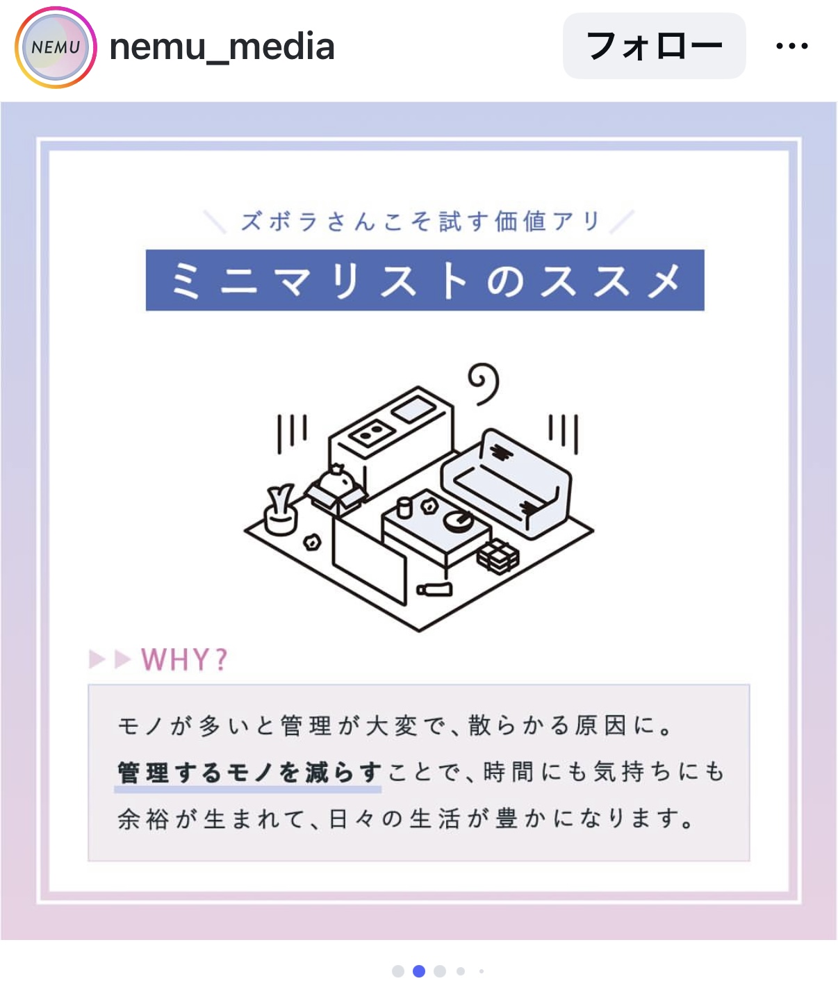 【コンペ採用案件】Instagramフィード投稿 nana webデザイナー OVERVIEW ・20代~30代向けのライフスタイル系キュレーションメディアのInstagramフィード投稿案件 ・投稿を通して共感、興味喚起を行い、新規ユーザー獲得や既存ユーザーのリーチ数増加を主な目的として作成