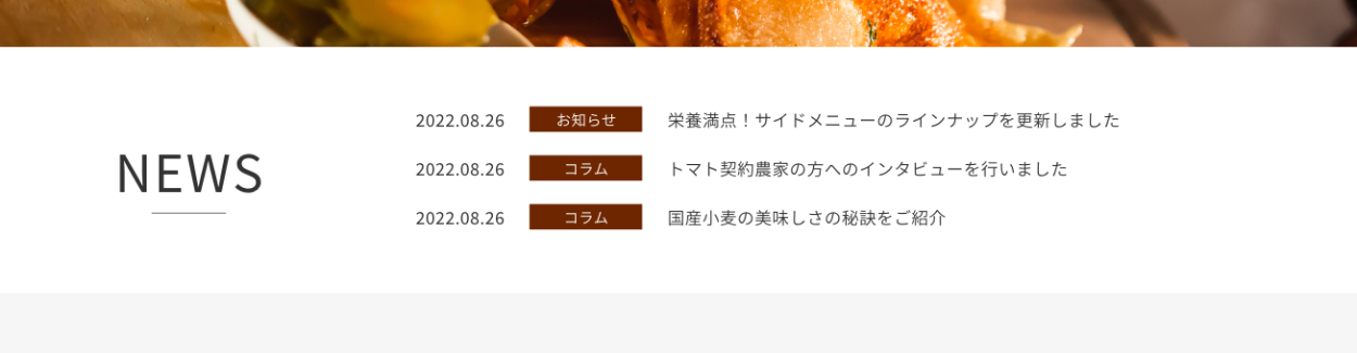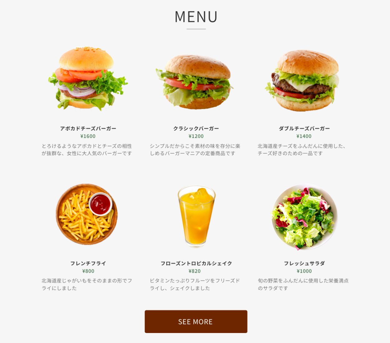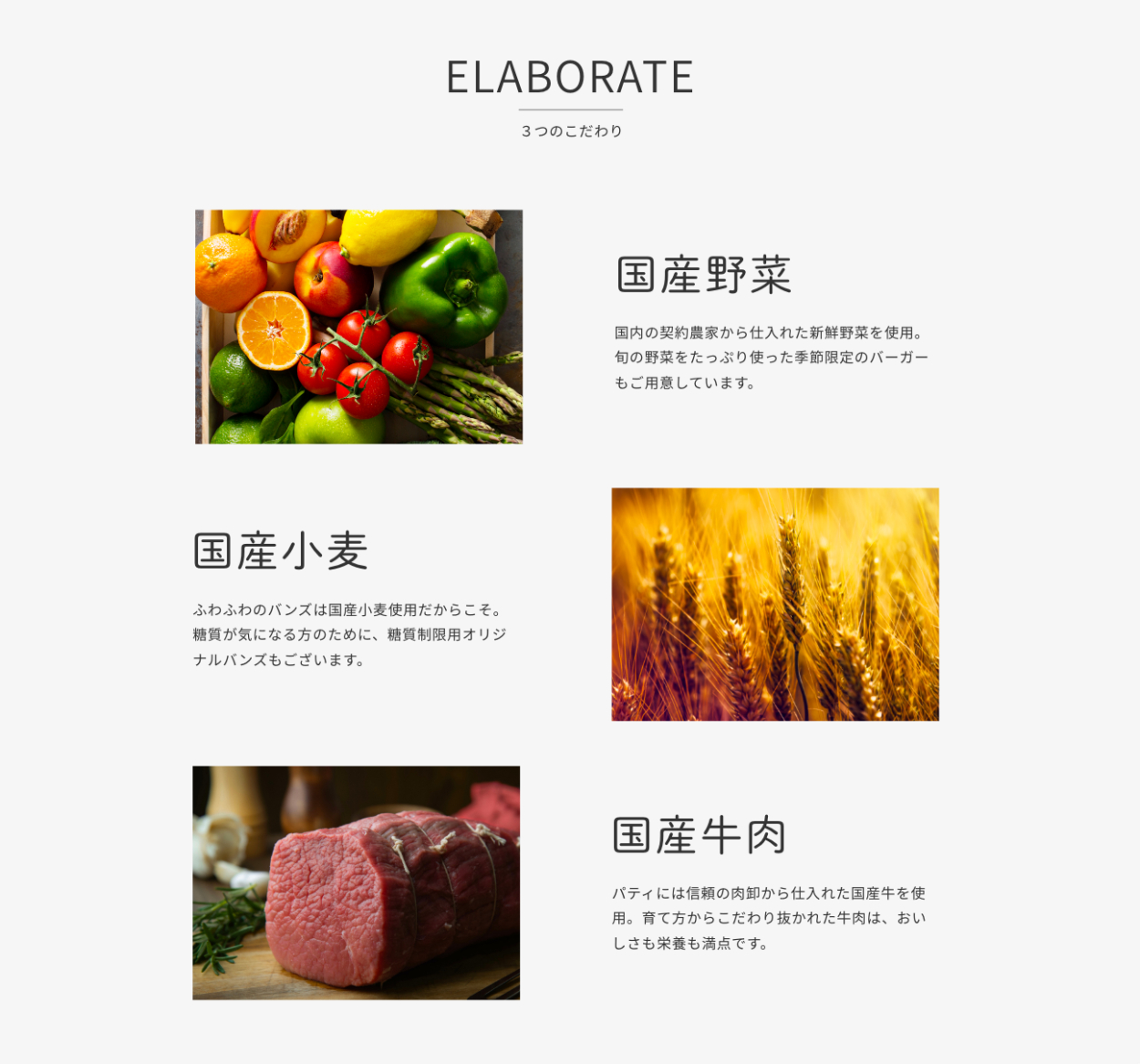 - 素材へのこだわりを大きくアピールするため、それぞれ調理前の食材の写真を使用