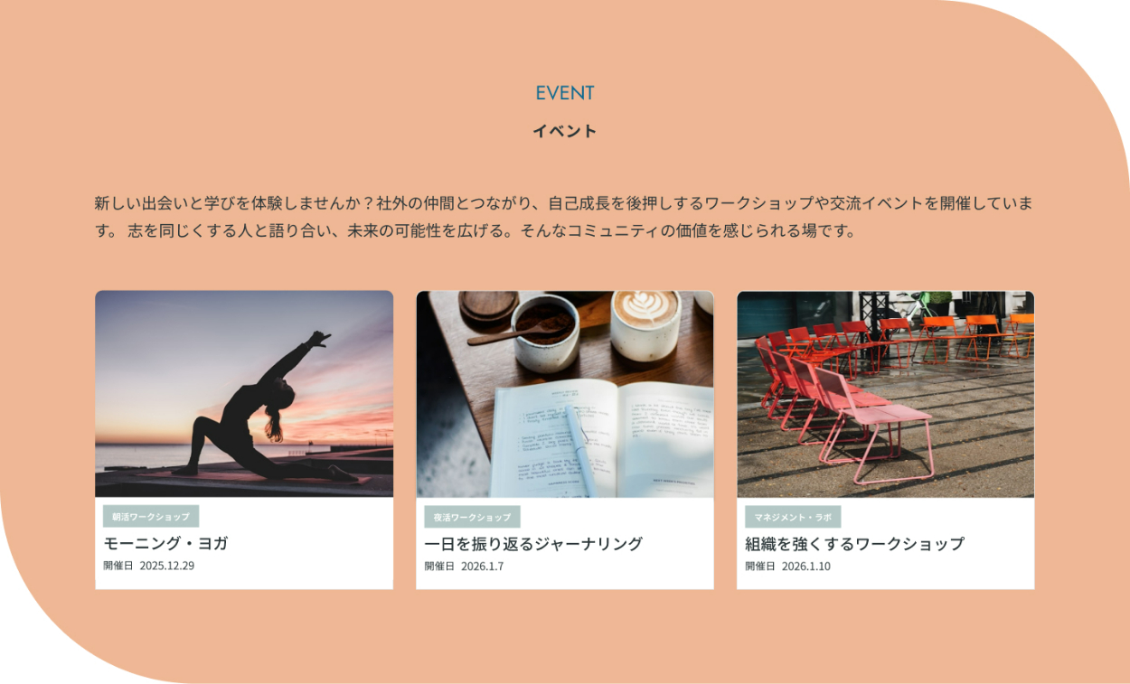同じ年代や価値観を持つ方の感想を読むことで、「自分もこのコワーキングスペースで学びたい」「似た考えの人とつながりたい」と感じていただけるよう、ペルソナに近い声を意識して追記した。