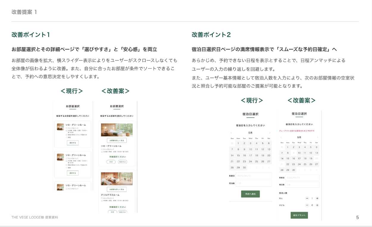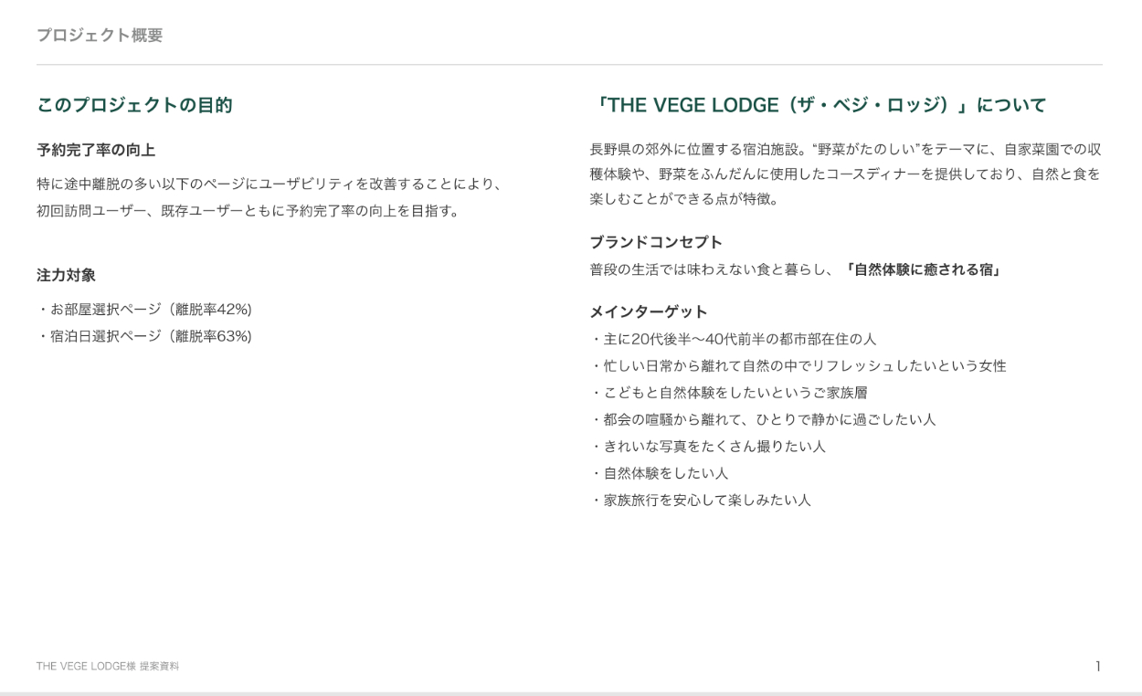1.内容:当施設のWebサイトからの予約完了率が想定よりもかなり低 く、サイト改善の必要性を感じている。