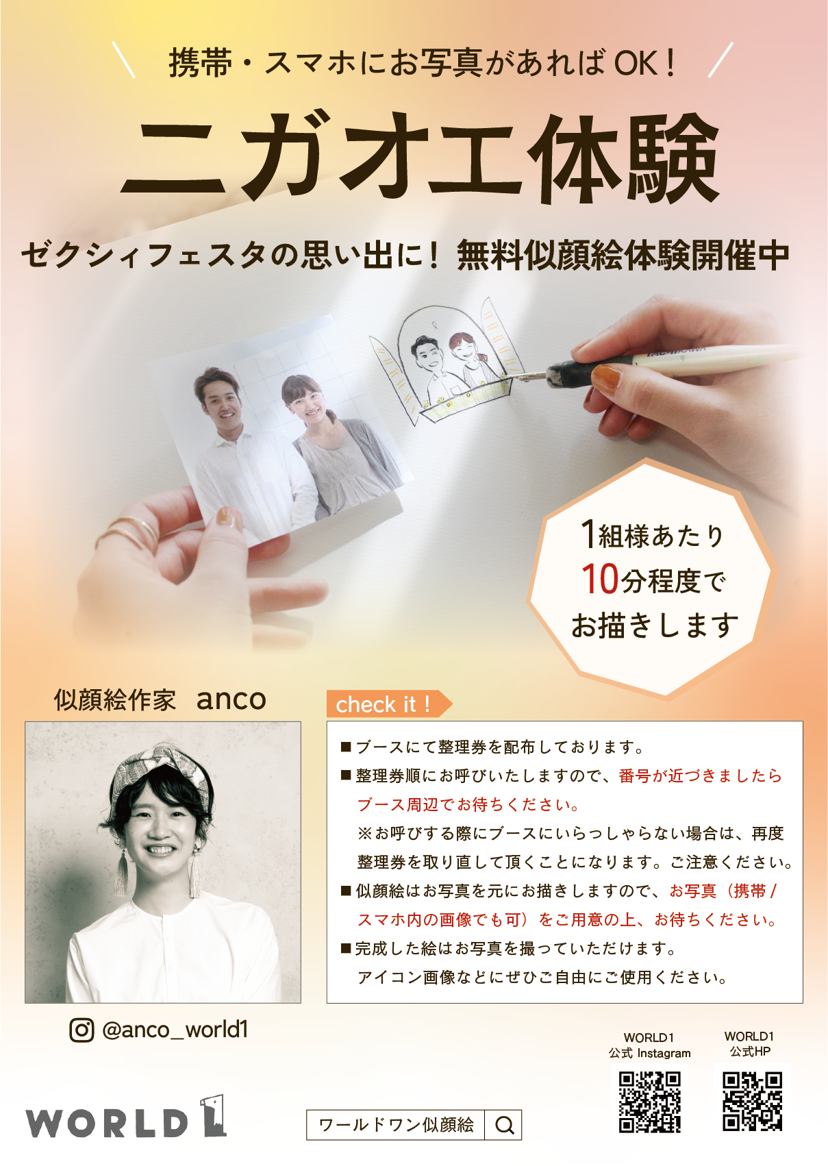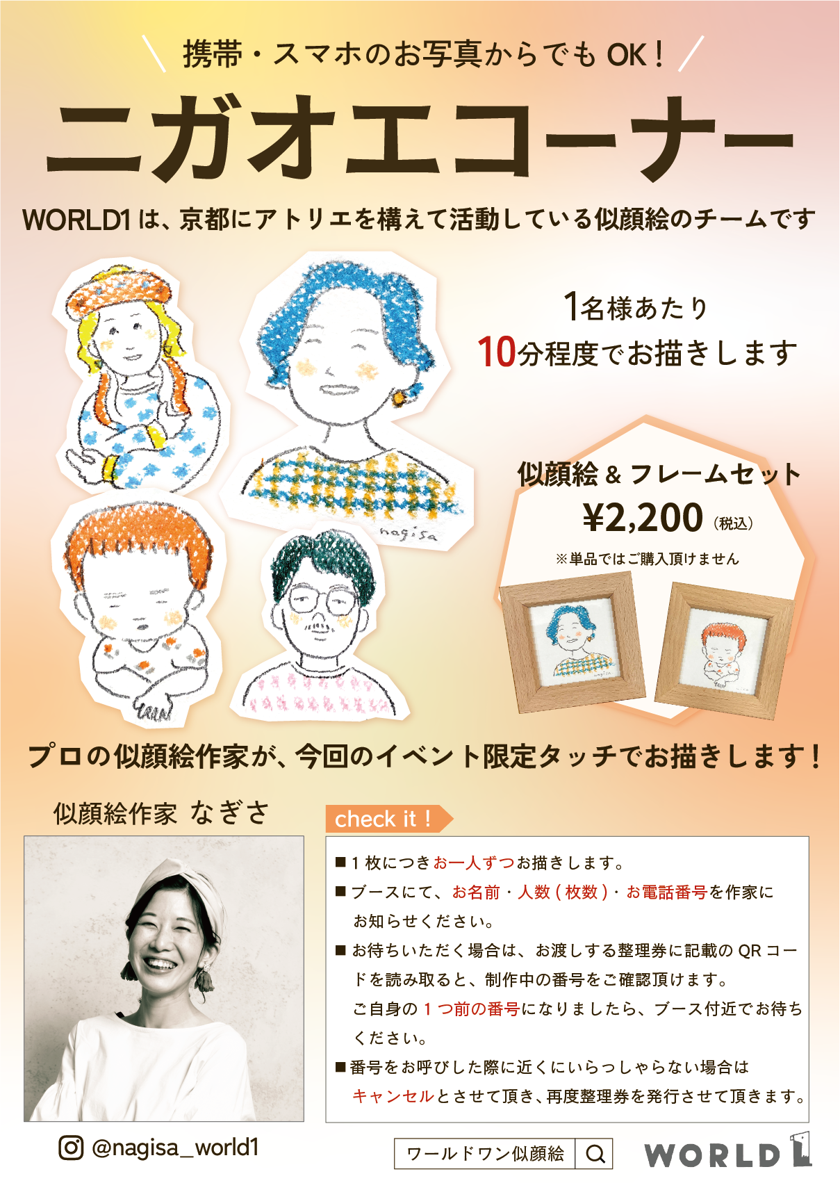 WORLD1の似顔絵作家がイベントに出展する際の、A2サイズの看板を制作しました。
