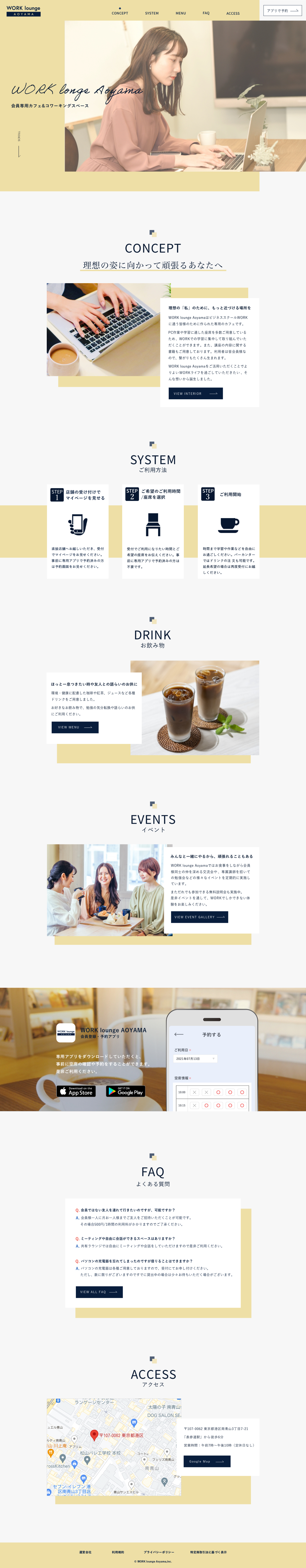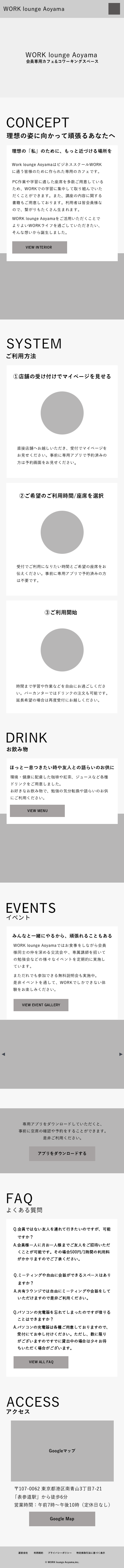 セクションの順序を「concept→drink」ではなく「concept→system」に変更し、早い段階で簡単に利用できるとわかるようにしました。