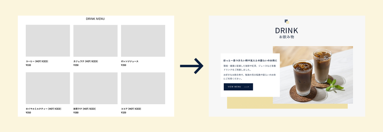 ・Drinkをペルソナに合わせたデザインに変更