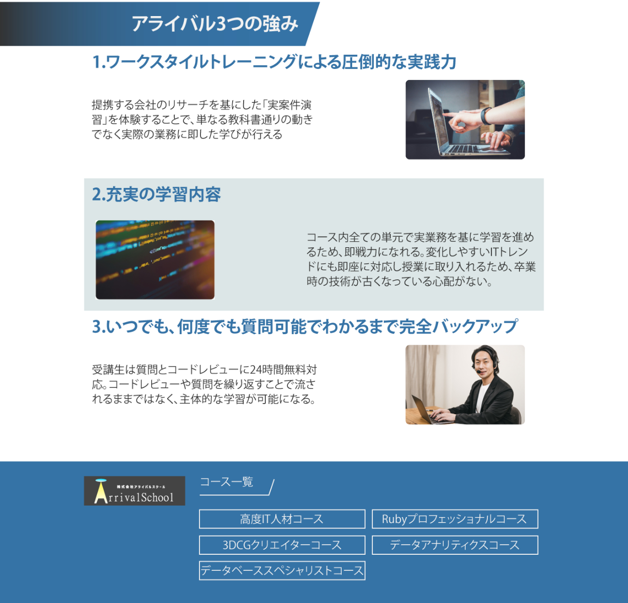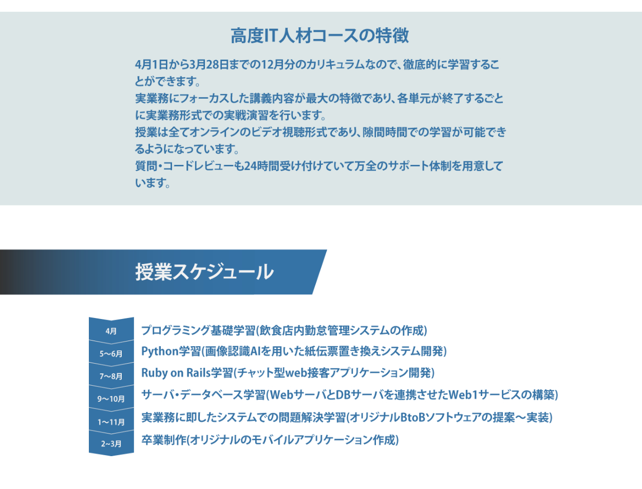 新規コースであること、レベルの高い専門的な内容を学習するということで気後れさせないよう柔らかい印象や軽やかな印象を与える白をベースにしています。メインカラーはPython学習をするということなのでPythonをイメージさせる色かつ、メインターゲットが大学生及び20・30台の若者のためスタイリッシュさを感じさせる青にしています。