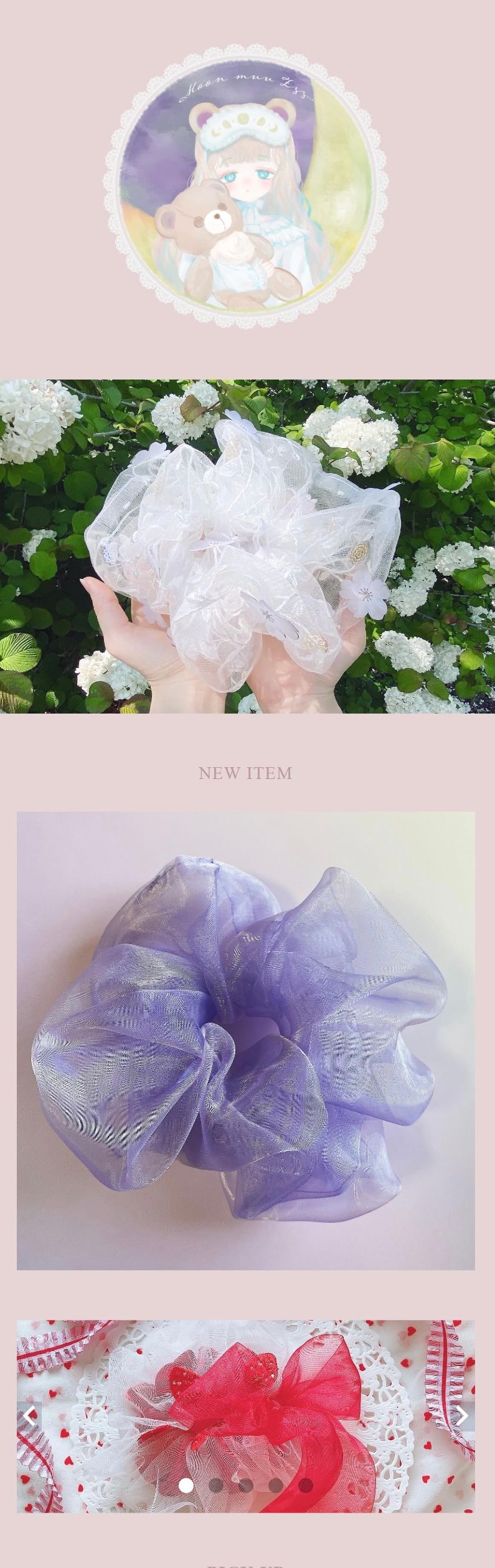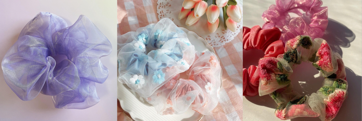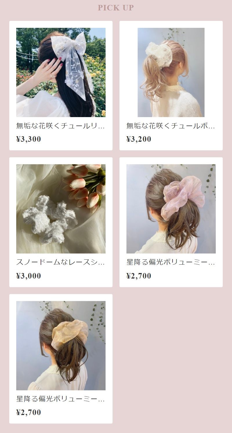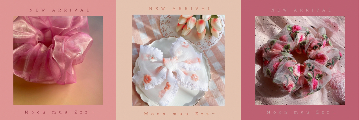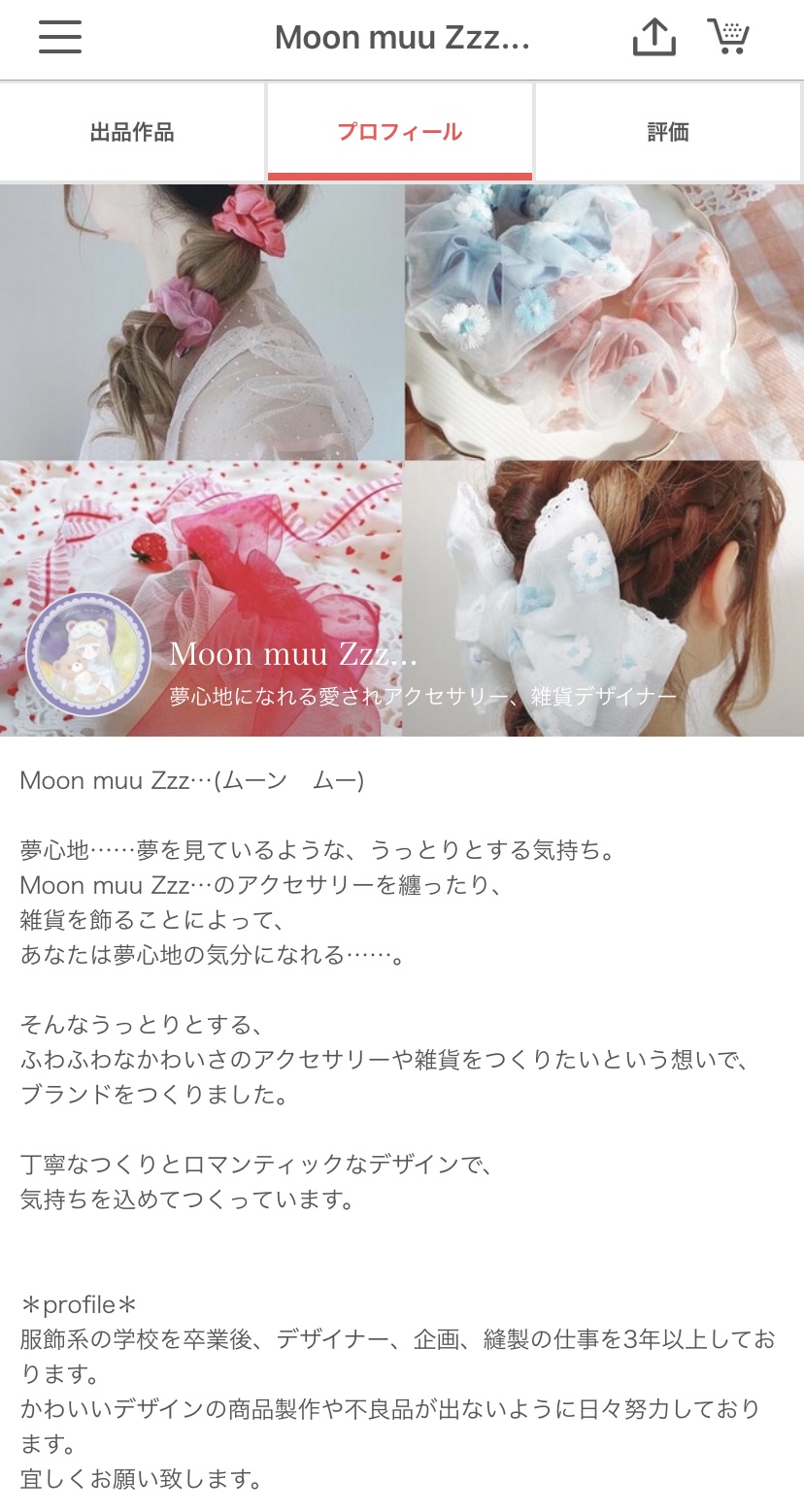 ターゲットは10〜30代の女性。”夢心地”をコンセプトにチュールやオーガンジー、リボンテープなど乙女心をくすぐるモチーフでシュシュやバレッタなど、布ものメインのヘアアクセサリーを製作しておりました。